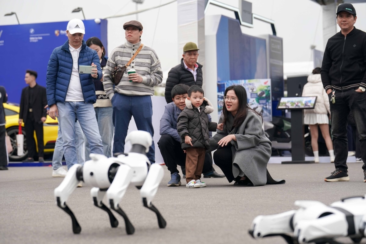 Ở VnMS, không chỉ xe, các hãng còn trình diễn những công nghệ độc đáo, thu hút khách thưởng lãm. Trong ảnh là chó robot ở khu trưng bày Omoda & Jaecoo. Ảnh: Hoàng Giang