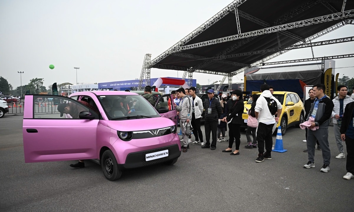 Dòng người chờ đến lượt lái thử dòng xe nhỏ và giá rẻ nhất của VinFast - Minio Green tại VnMS 2025. Ảnh: Minh Quân