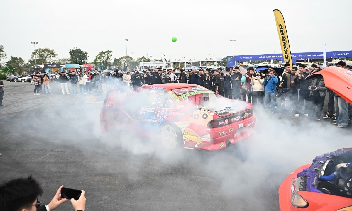 Không gian cho giới yêu xe độ là nét mới ở VnMS và Car Awards 2025. Những màn đốt lốp, trình diễn gymkhana, drift thu hút hàng nghìn người theo dõi trực tiếp lẫn trực tuyến. Ảnh: Minh Quân