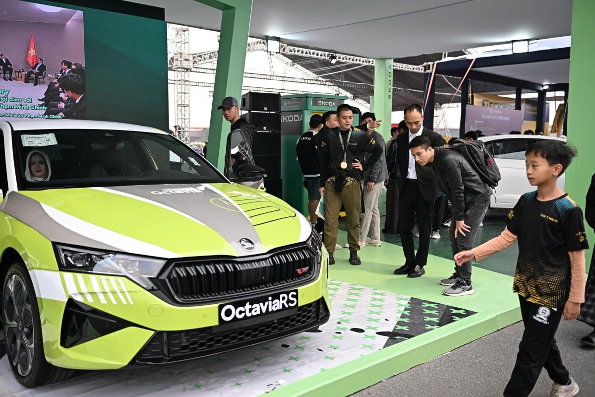 Ở các khu trưng bày xe, khách tham quan xuyên suốt 3 ngày diễn ra triển lãm, 26-28/12. Những mẫu xe mới nhất, bán chạy nhất được các hãng mang đến VnMS 2025. Trong ảnh là nhóm khách tìm hiểu chiếc sedan hiệu suất cao Octavia RS của Skoda. Ảnh: Minh Quân