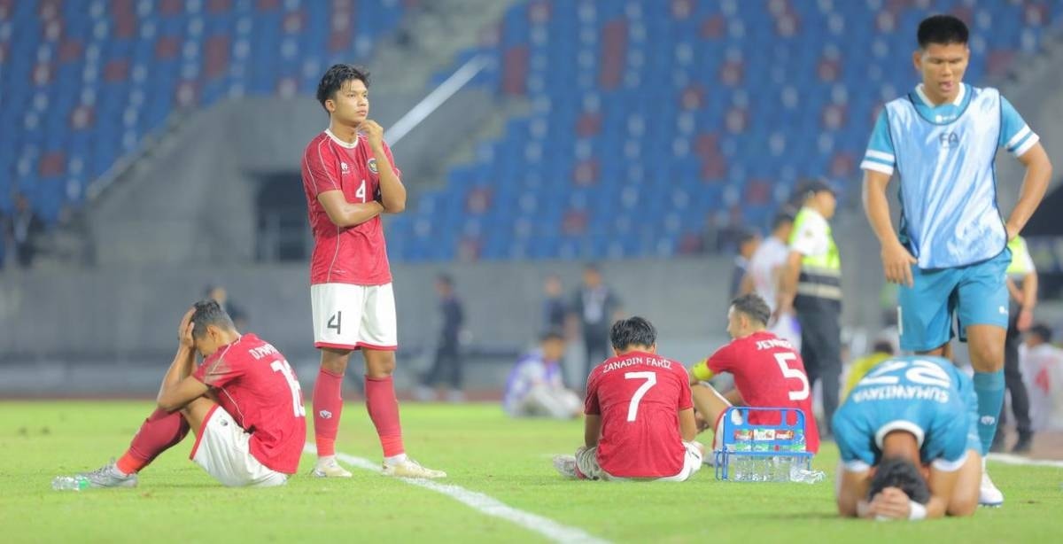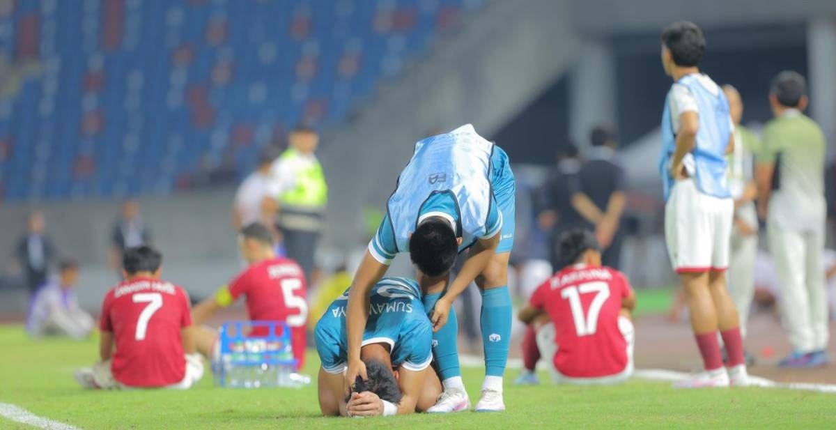 Jens Raven khóc òa, trong khi nhiều đồng đội đổ sụp, thẫn lờ vì U22 Indonesia dừng bước ngay từ vòng bảng bóng đá nam SEA Games 33.