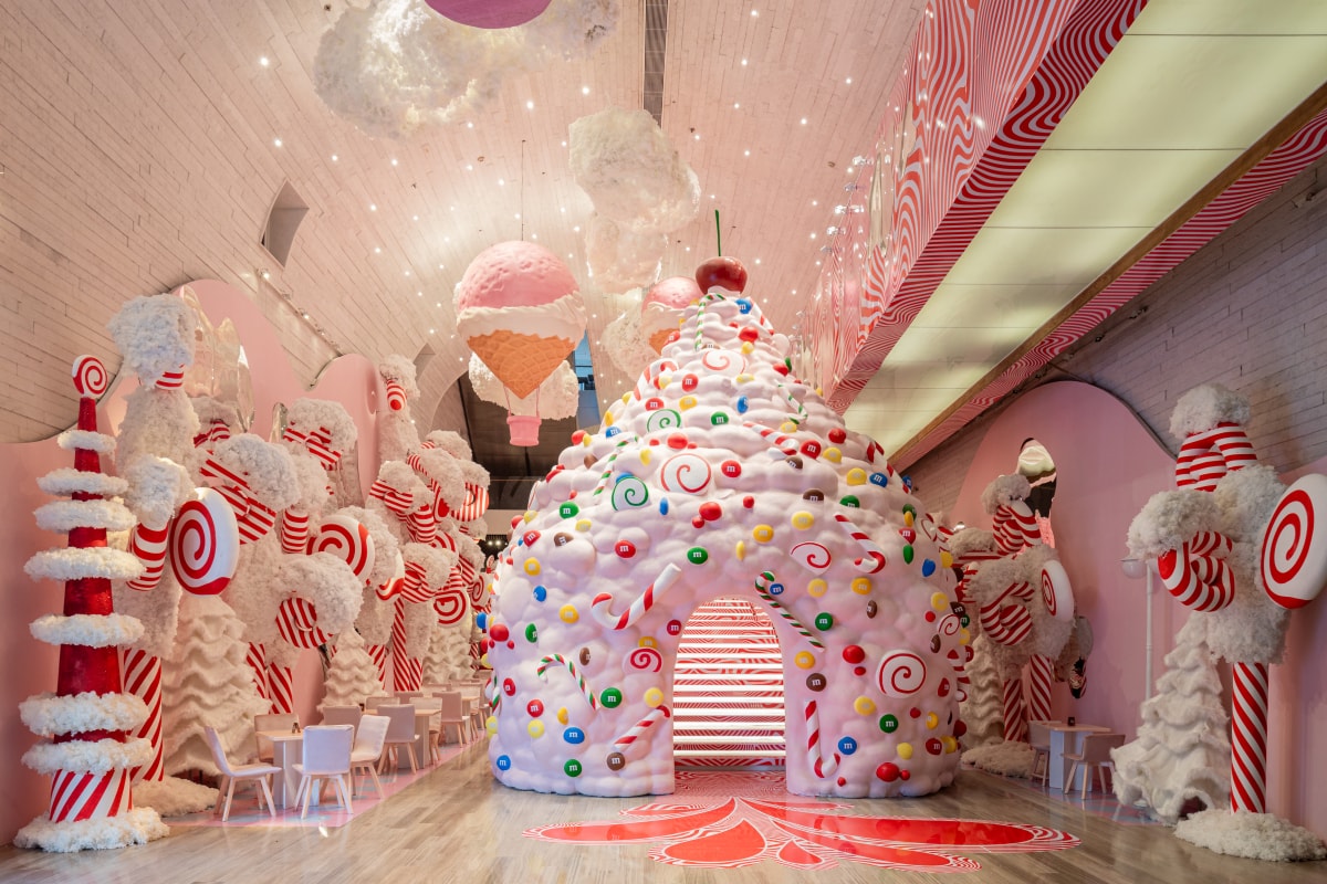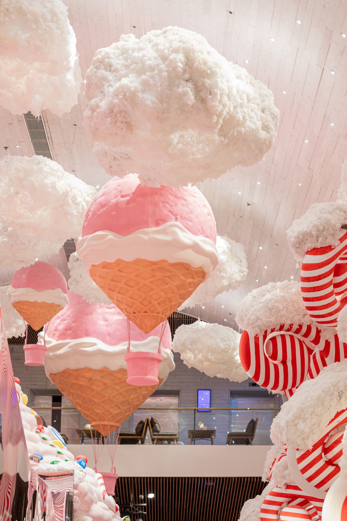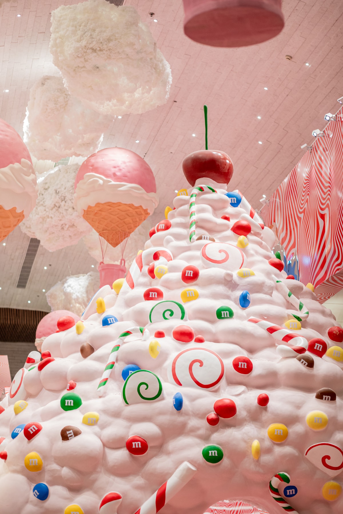Cây thông cao 10 m làm từ bông, xốp cùng mô hình kem ốc quế, kẹo gậy khổng lồ hút nhiều bạn trẻ check-in trước thềm Giáng sinh tại Gem Center.
