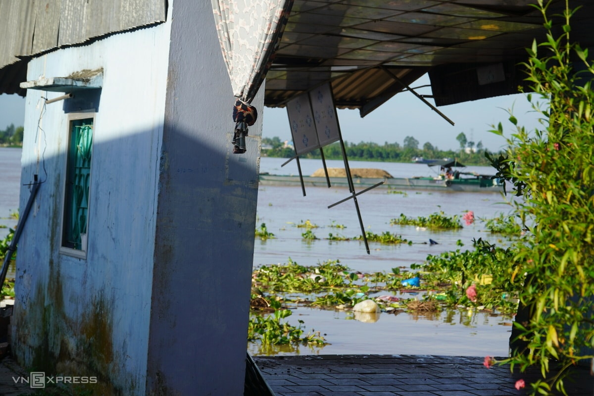 Gần một tuần qua, người dân ở khóm Tân Tịch, phường Cao Lãnh, sống trong cảnh phập phồng vì sạt lở, phải liên tục di dời đồ đạc trốn "hà bá".