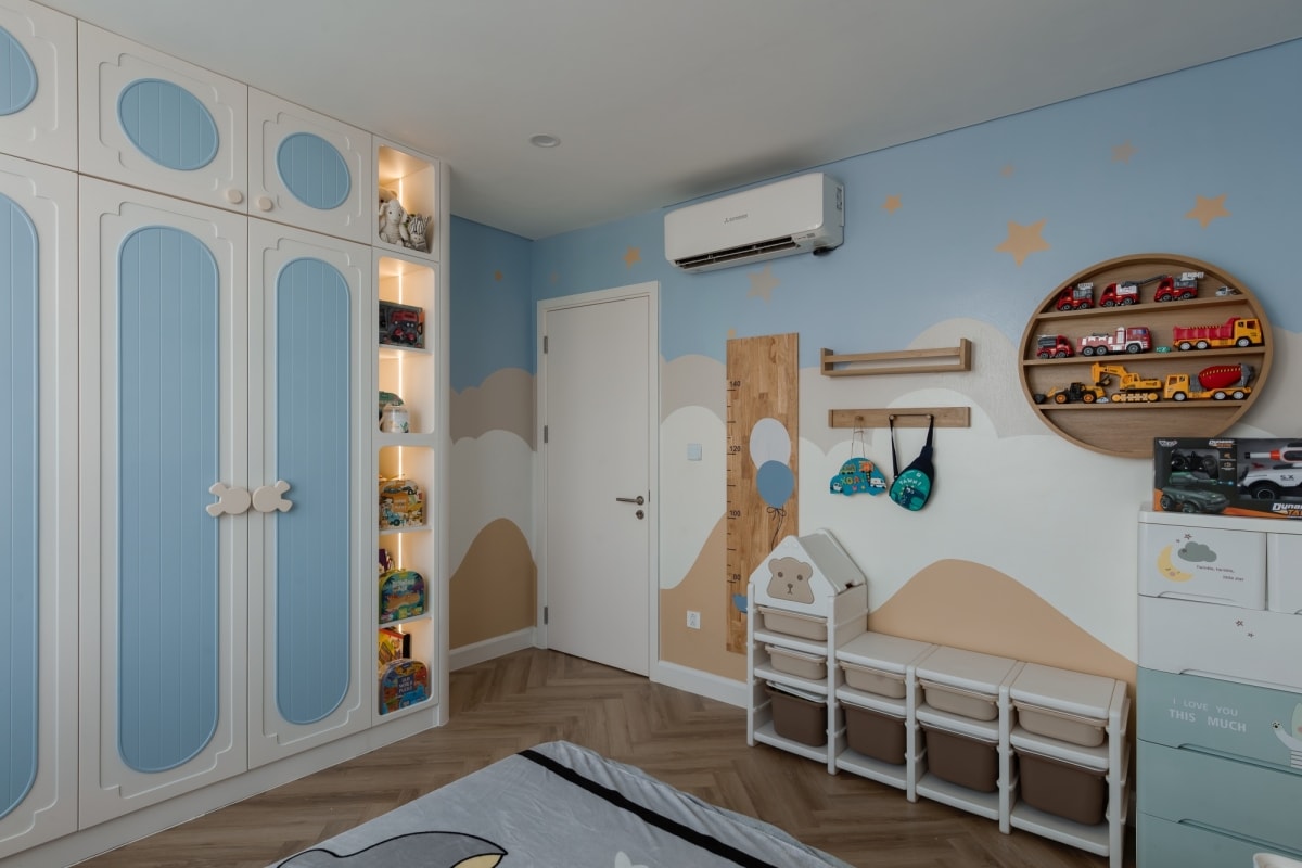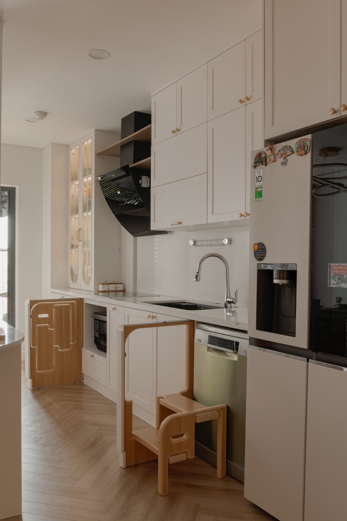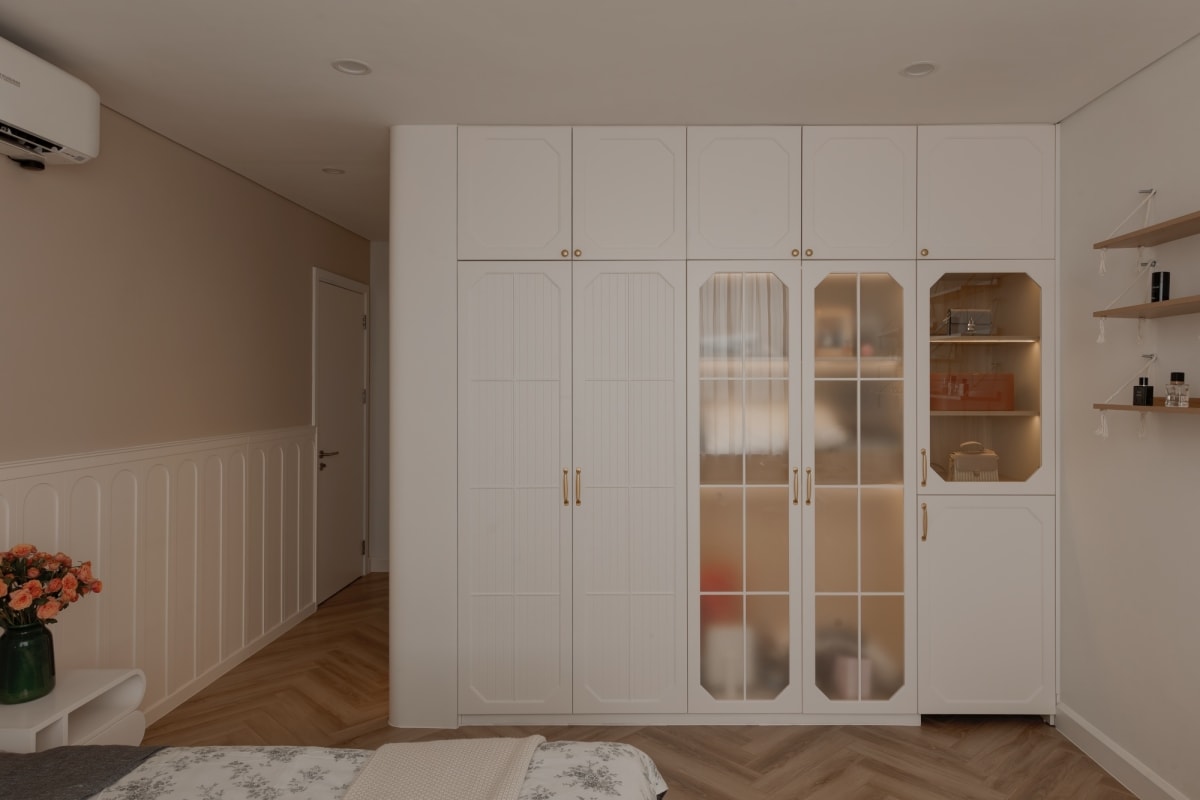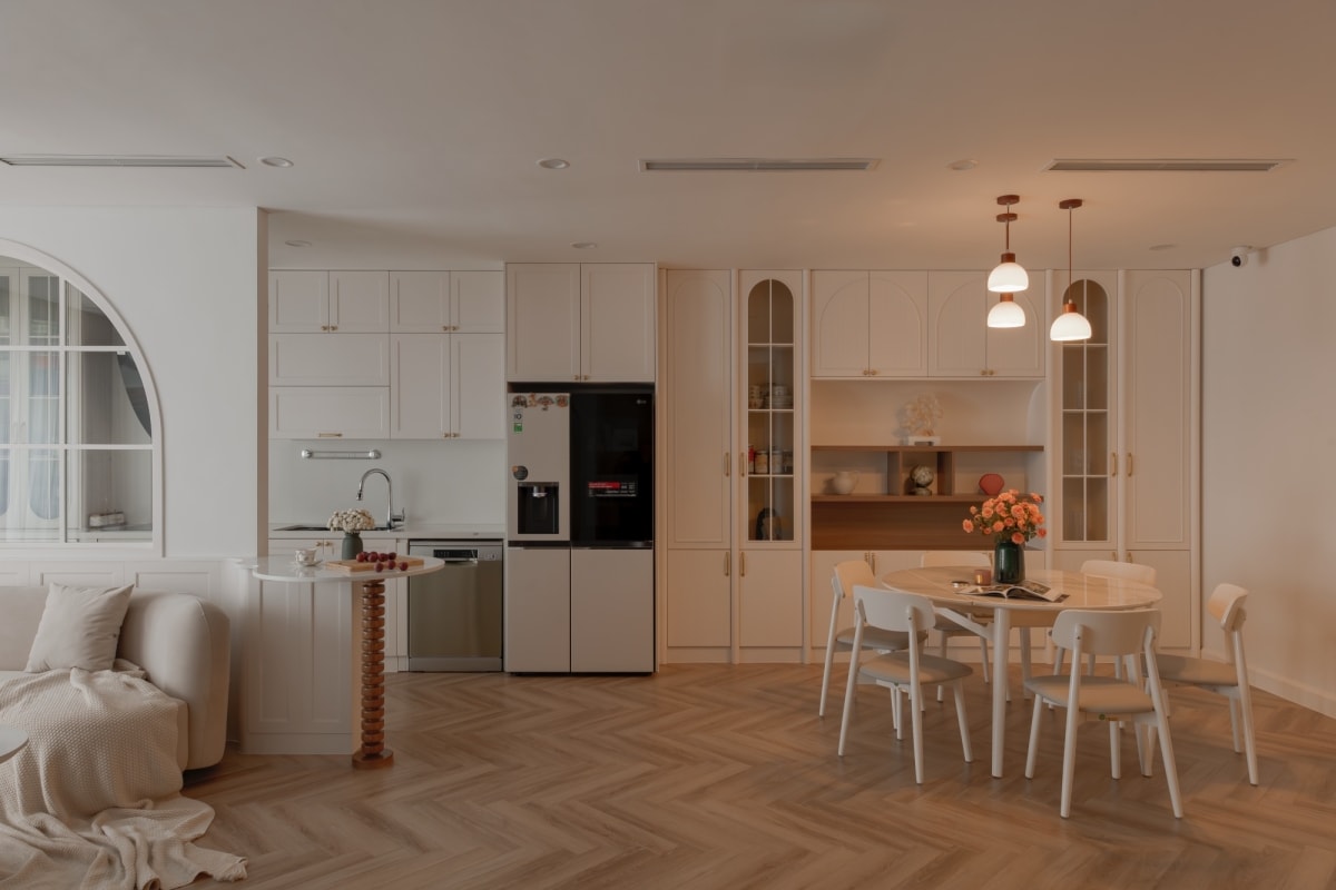 Không gian sử dụng tông trung tính, hệ vòm xuyên suốt và chi tiết bo tròn, tăng cảm giác liền mạch, mềm mại.