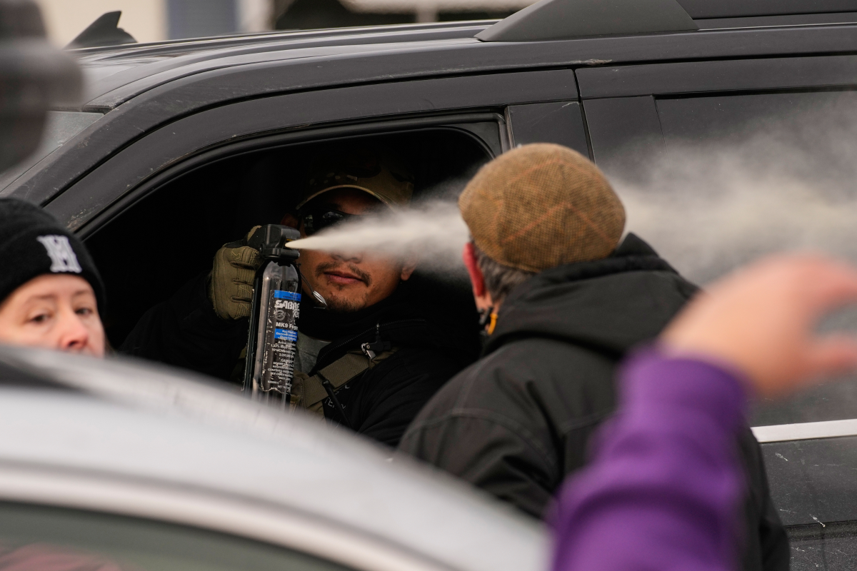 Một đặc vụ liên bang xịt hơi cay vào người phản đối trong chiến dịch bắt bớ người nhập cư ở Minneapolis.