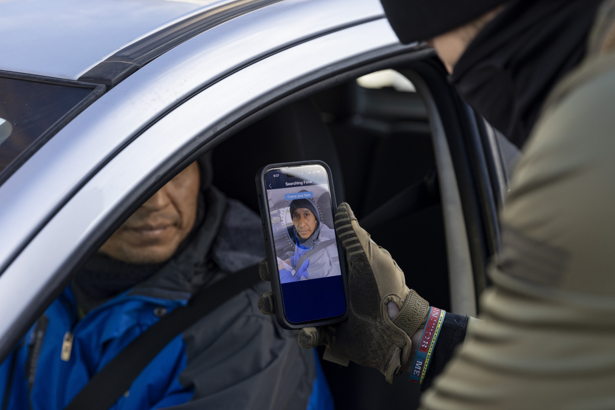 Một đặc vụ liên bang dừng xe, quét khuôn mặt tài xế để kiểm tra tình trạng lưu trú trên cơ sở dữ liệu hôm 13/1.