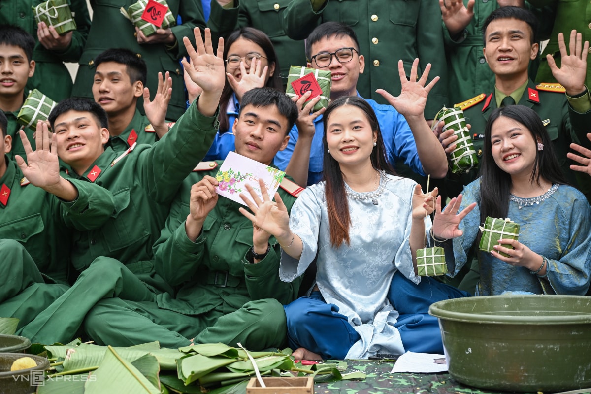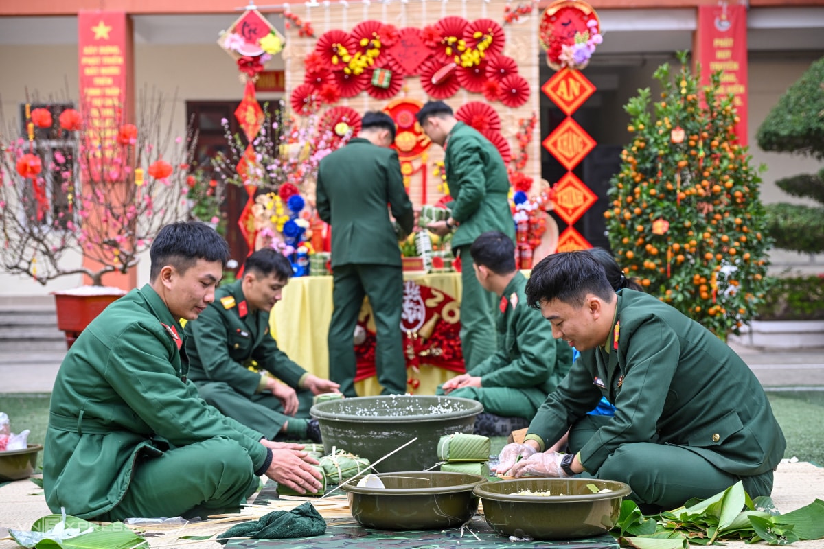 Chiến sĩ lữ đoàn 144 gói gần 2.000 bánh chưng ăn Tết