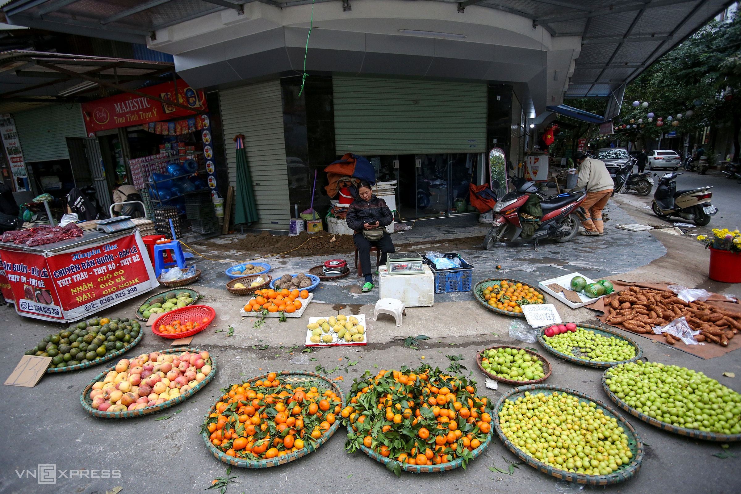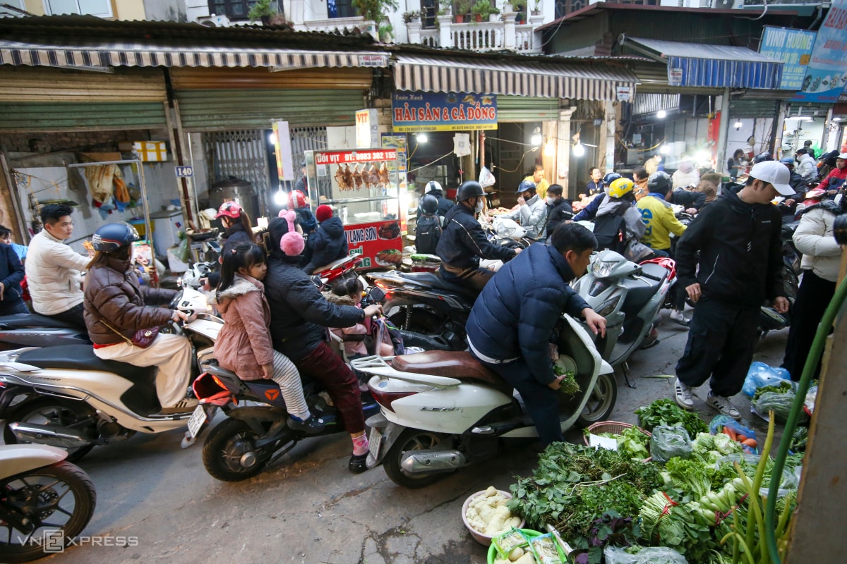Trên đoạn phố kéo dài khoảng 500 m, hàng chục hộ tập trung kinh doanh. Vào giờ cao điểm, người mua bán tấp nập, tuyến đường thường xuyên ùn ứ.
