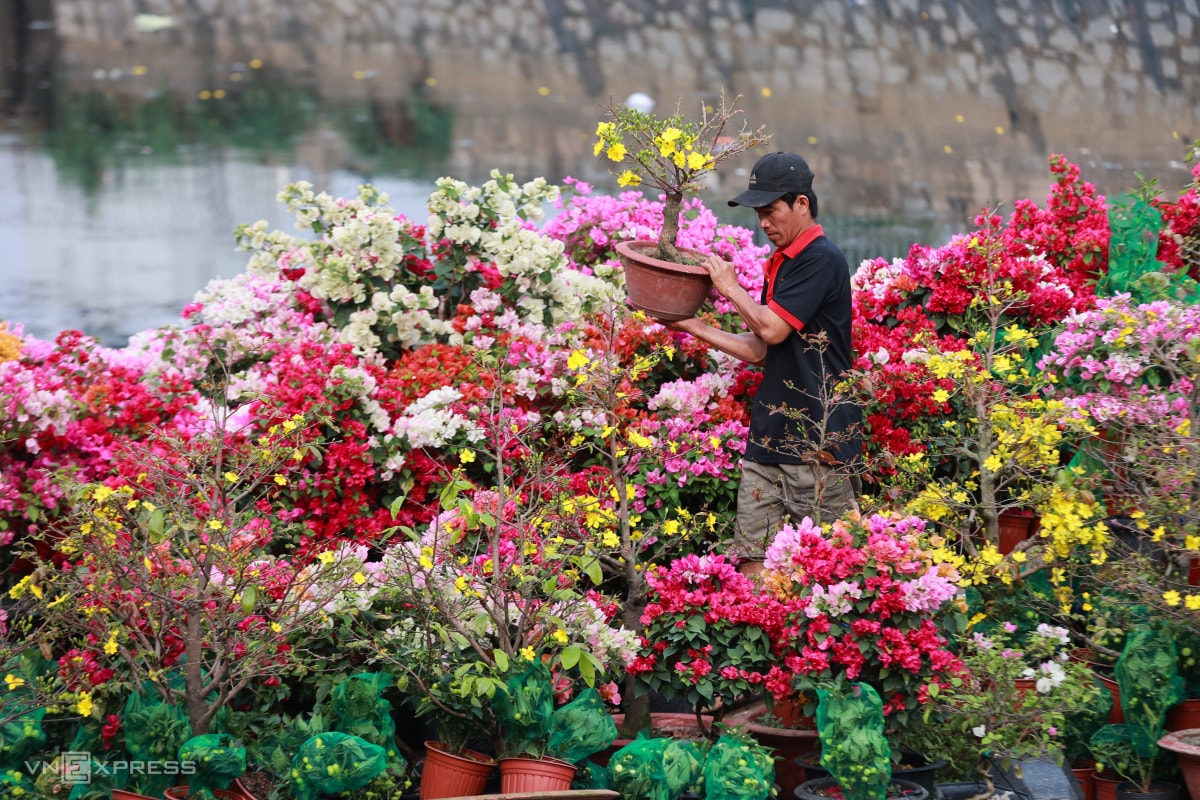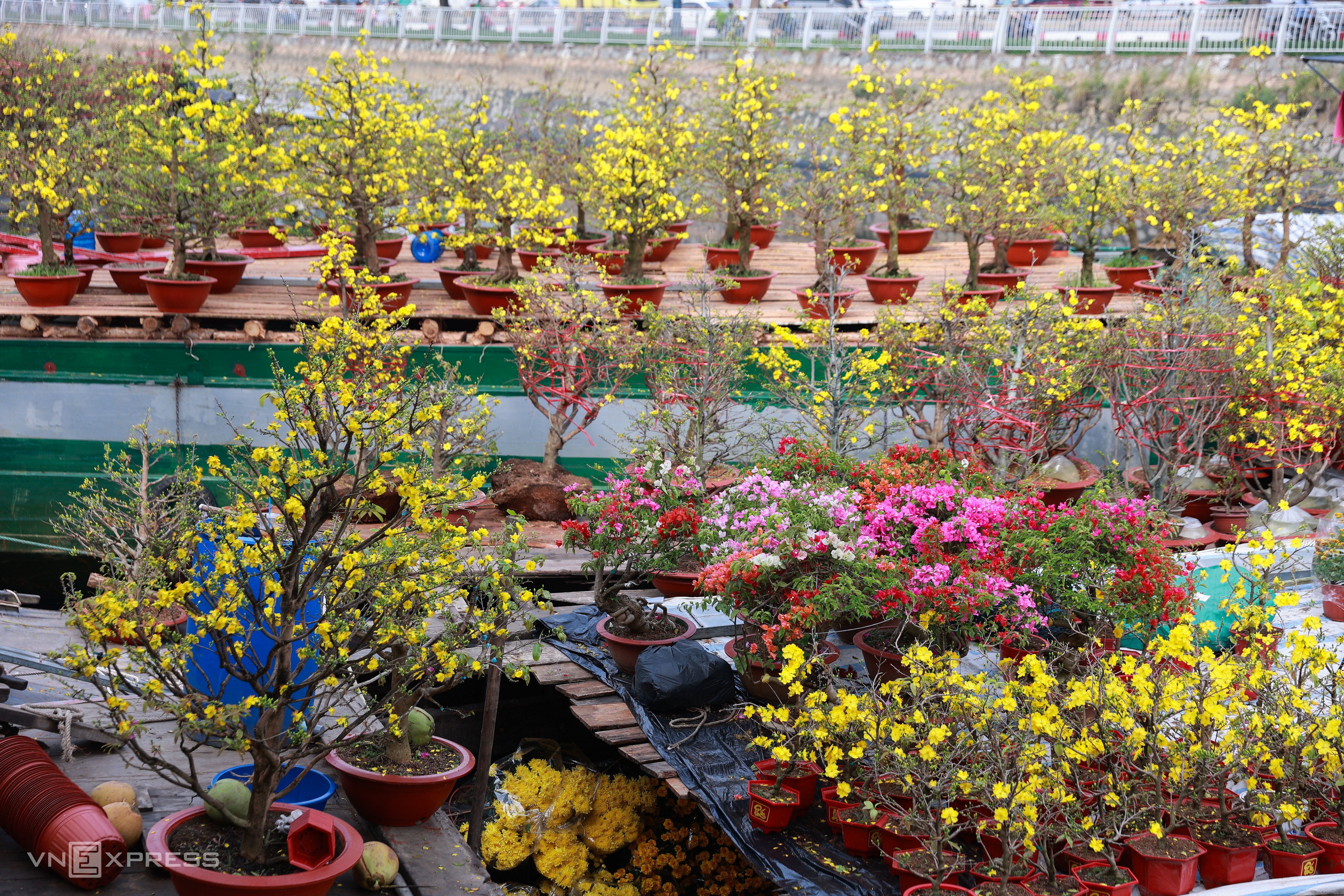 Các ghe chở đủ loại hoa Tết đặc trưng của miền Nam như mai, giấy, cúc, vạn thọ... Thương hồ bố trí ghe theo từng khu vực, tách riêng nơi bán hoa và cây kiểng trên bến kênh và dọc đường Bến Bình Đông.