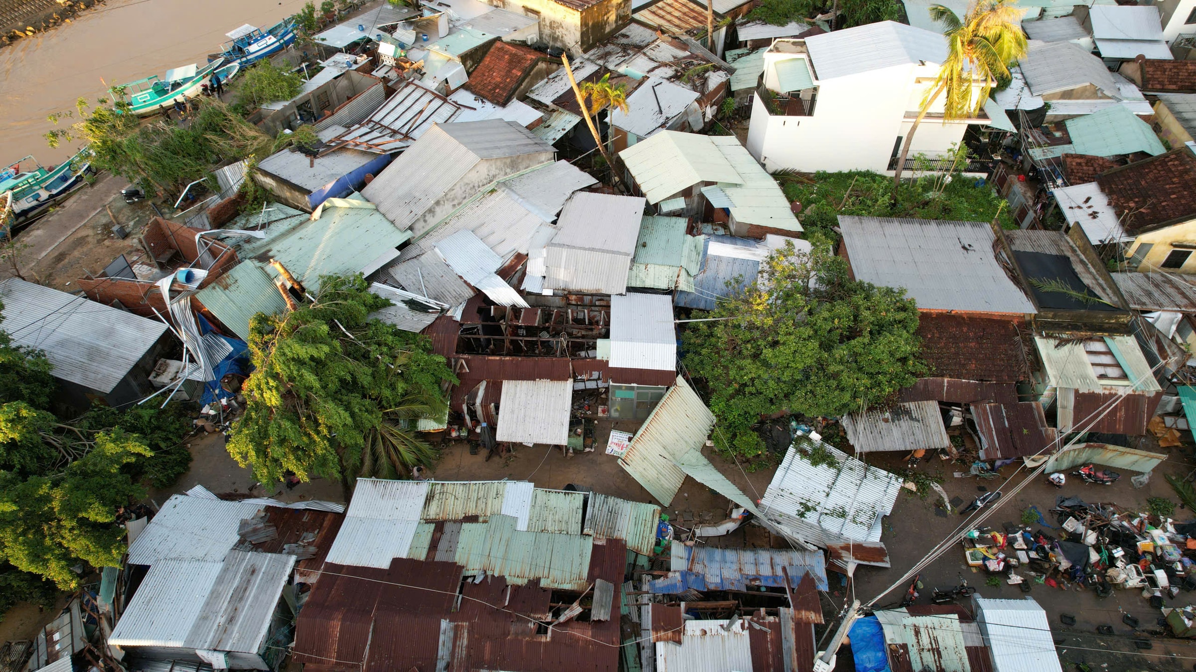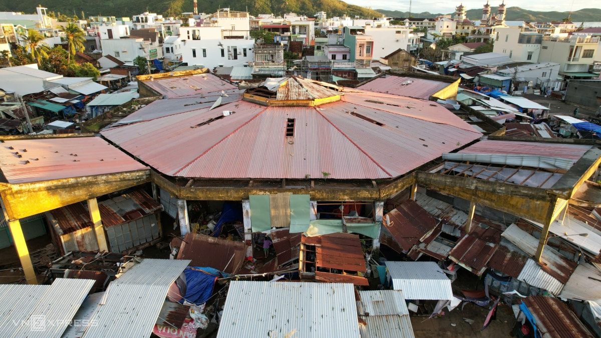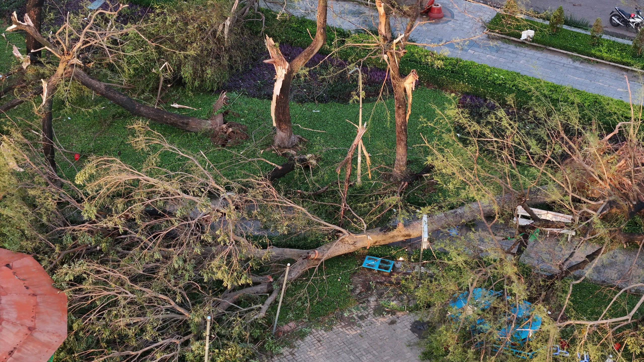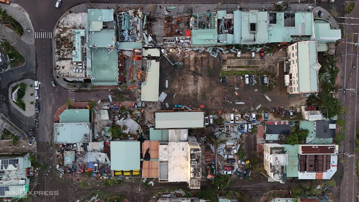 Chợ, nhà dân ở Sông Cầu, nhà máy ở Gia Lai, các tuyến đường, công viên cây cối, trụ điện gãy đổ sau bão Kalmaegi, sáng 7/11.