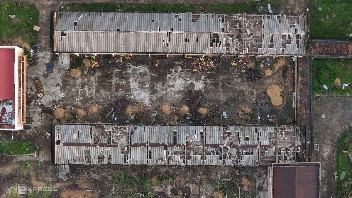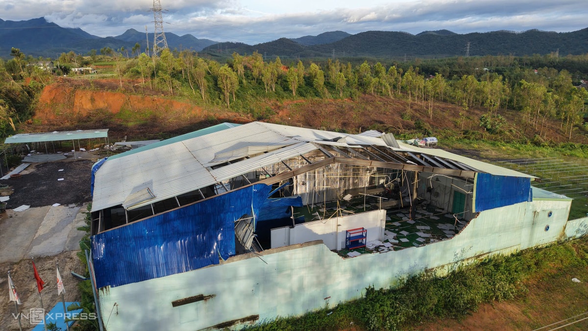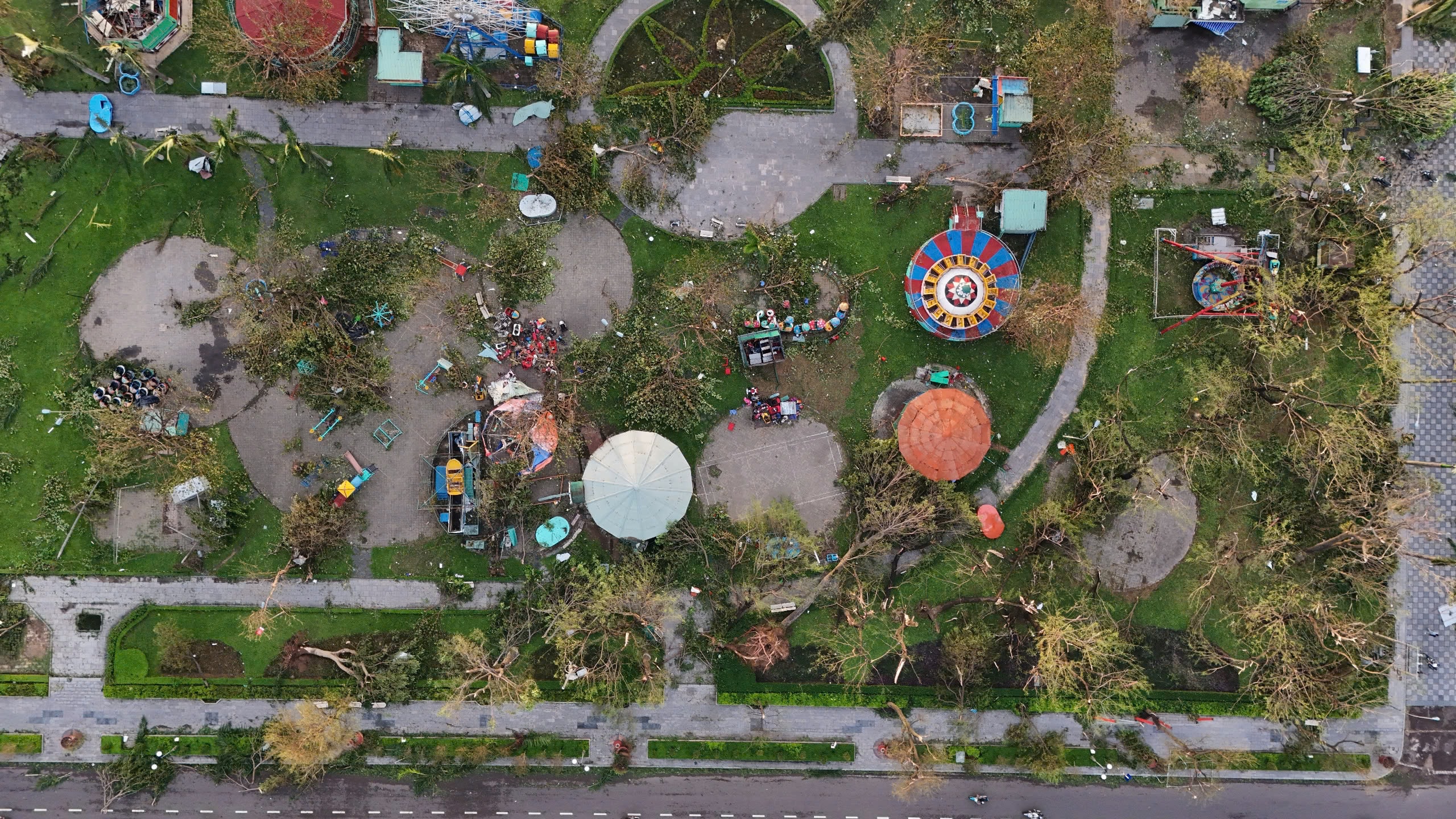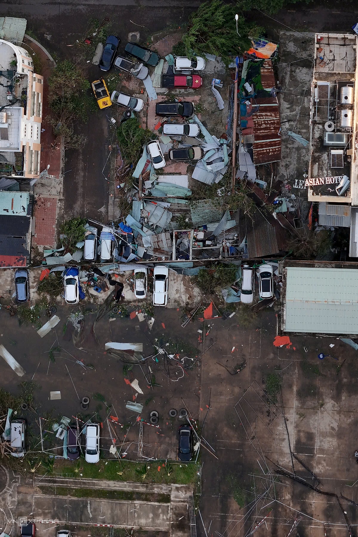 Chợ, nhà dân ở Sông Cầu, nhà máy ở Gia Lai, các tuyến đường, công viên cây cối, trụ điện gãy đổ sau bão Kalmaegi, sáng 7/11.