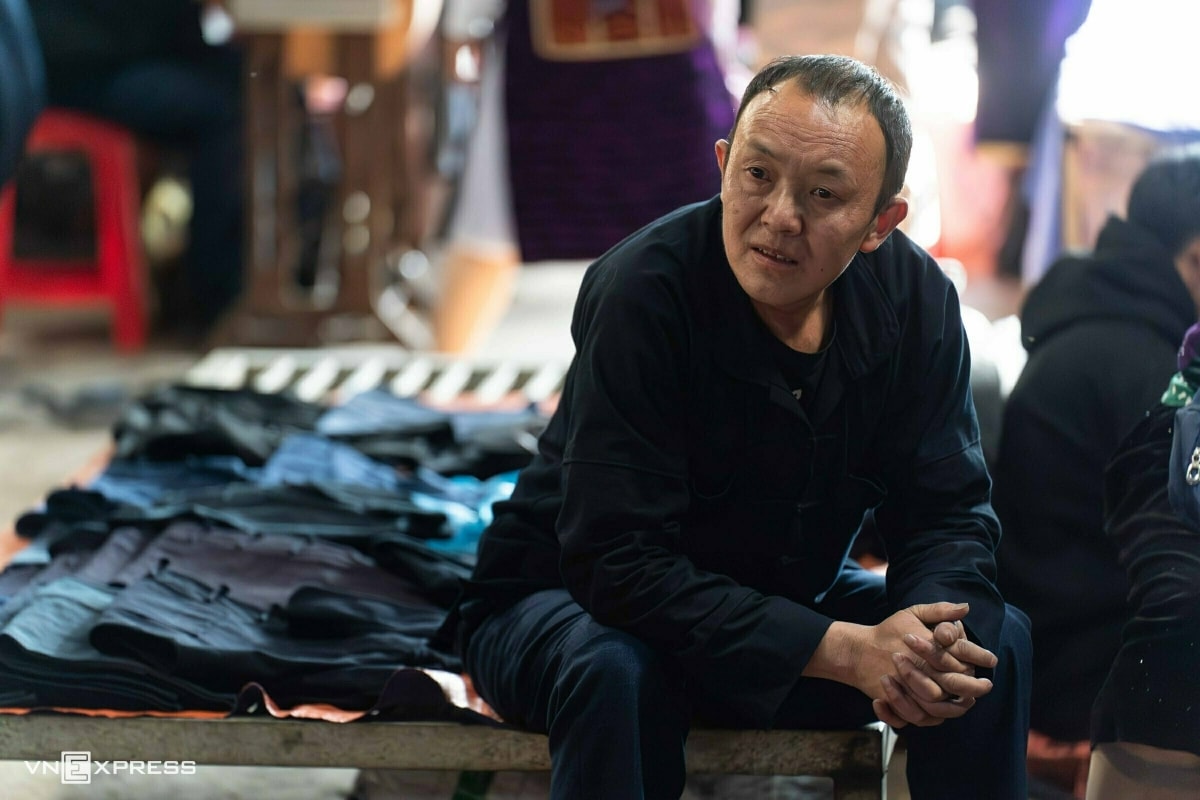Ngoài đồ ăn, khu ẩm thực này còn có một góc chuyên bán trang phục truyền thống. Ông Pàn Chí Tắc (áo đen) đã đi hơn 13 km tới chợ để bán hàng nhưng tới giữa trưa chưa bán được gì. Tuy nhiên, ông vẫn thấy vui mỗi lần tham gia chợ phiên vì không khí đặc biệt ở đây.
