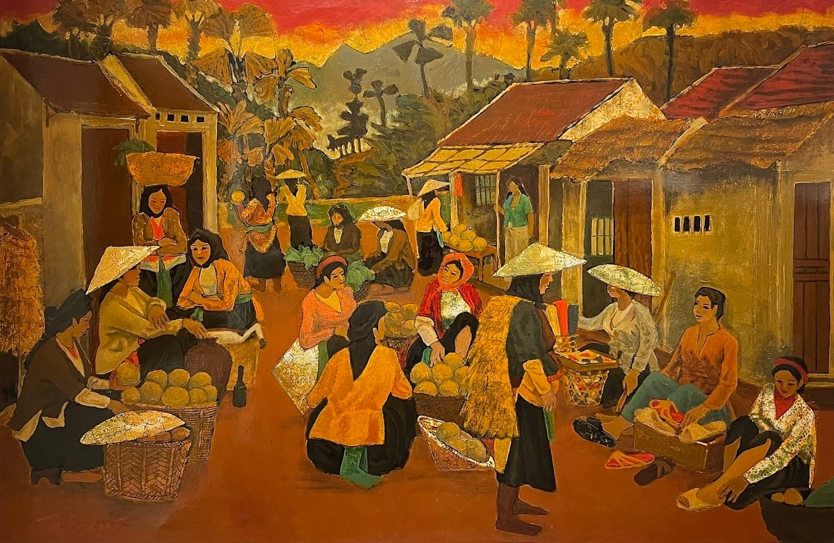 Chợ quê trong tranh họa sĩ Hoàng Sùng