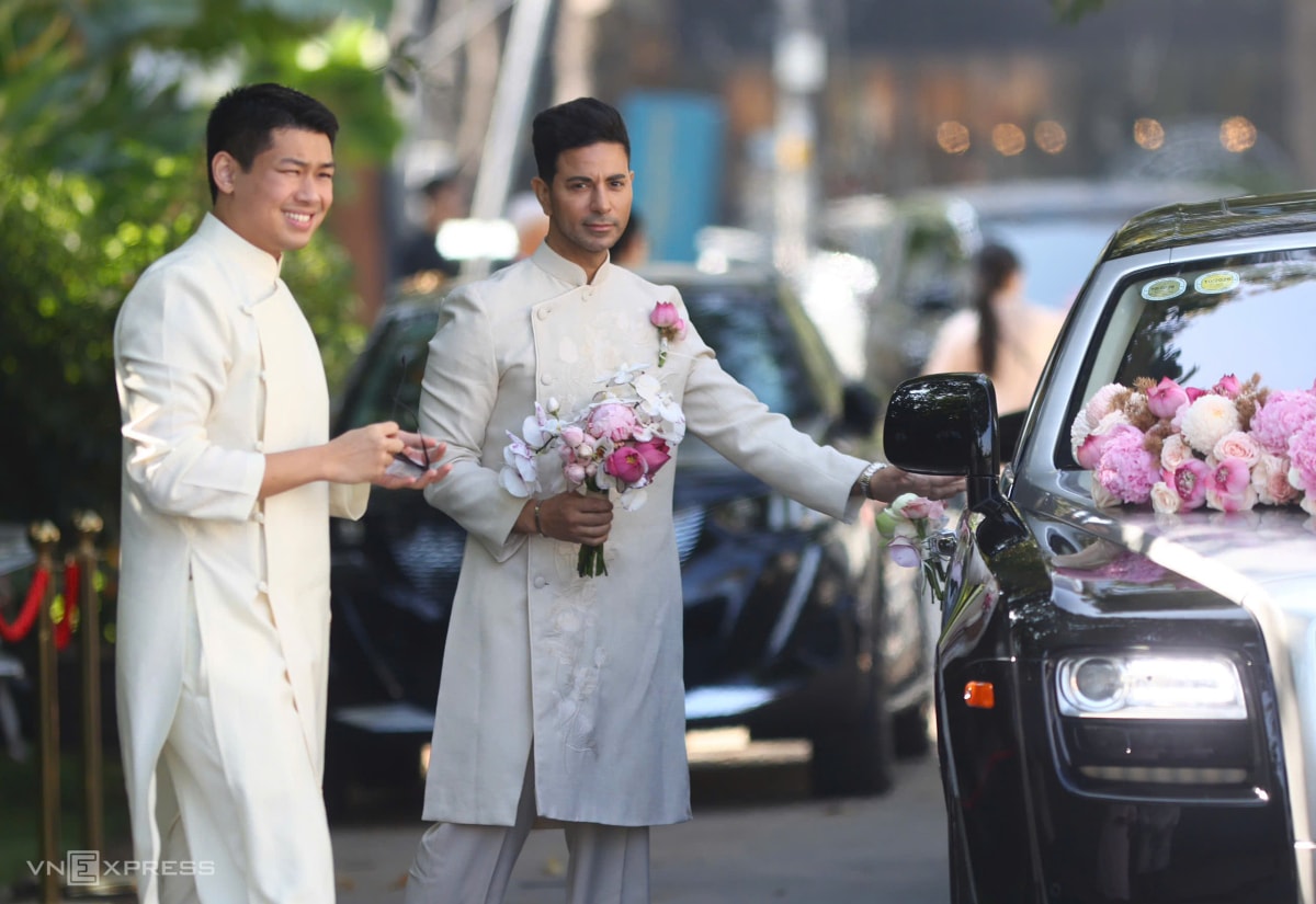 Chồng fashionista Tiên Nguyễn - Justin Cohen - dùng dàn xe Rolls-Royce hàng chục tỷ đến nhà gái rước dâu, sáng 7/12.