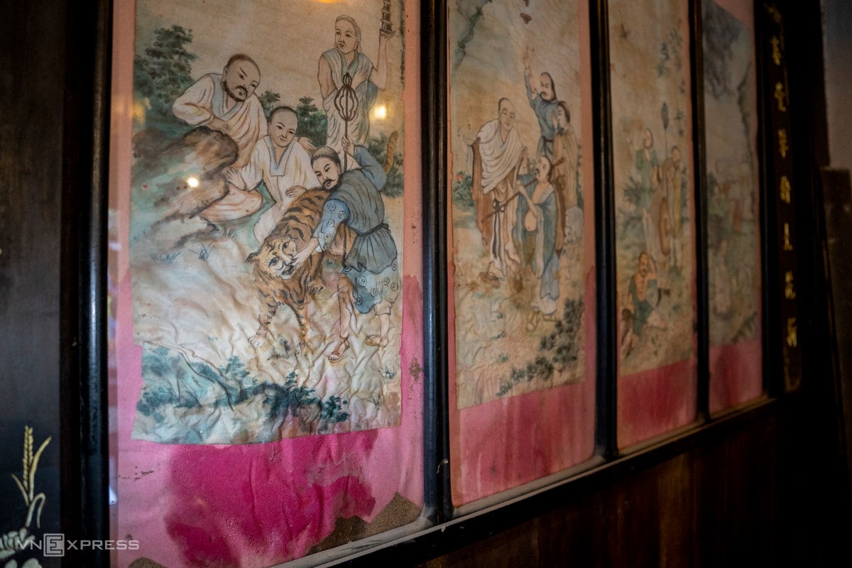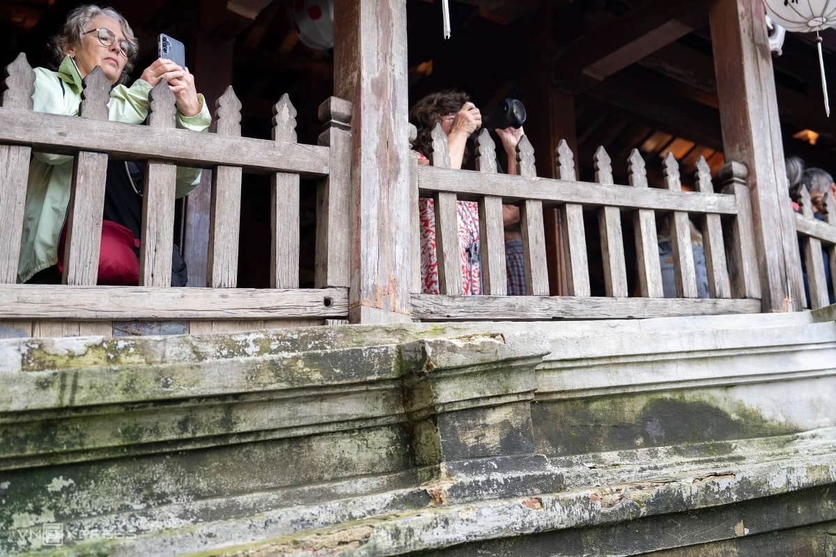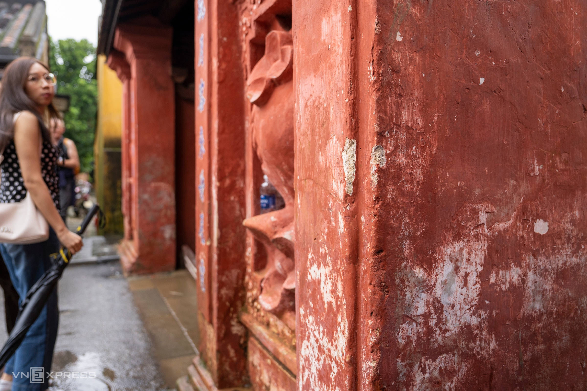 Tường, vách gỗ chùa Cầu phai màu, bong tróc, nhiều nhà cổ nổi tiếng cũng hư hỏng bàn ghế, tranh cổ... sau các đợt lũ liên tiếp tháng 10-11.