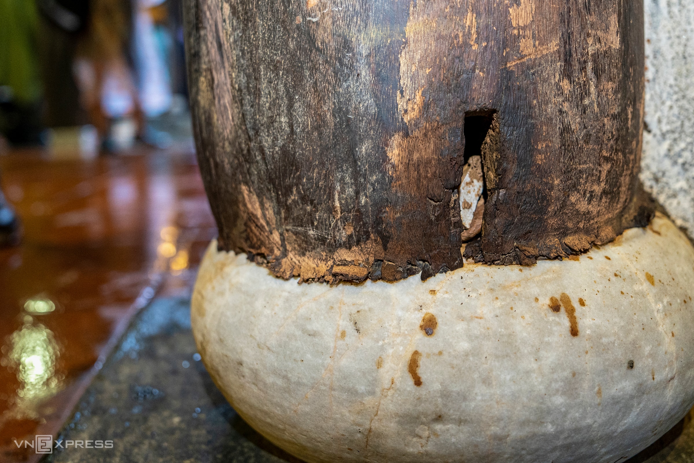 Nhiều trụ gỗ bên trong chùa sau các đợt trùng tu cũng có dấu hiệu bị hở vết nối. Bùn non dù đã được dọn và lau lại nhiều lần, nhưng vẫn còn bám trên di tích.