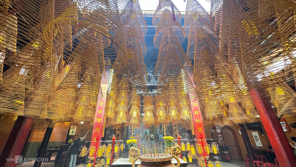 Cùng với việc cúng nhang khoanh, người dân, du khách có thể thắp đèn, đốt nhang thẻ để cầu an, cầu phúc... tại chùa Ông.