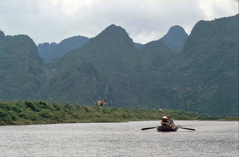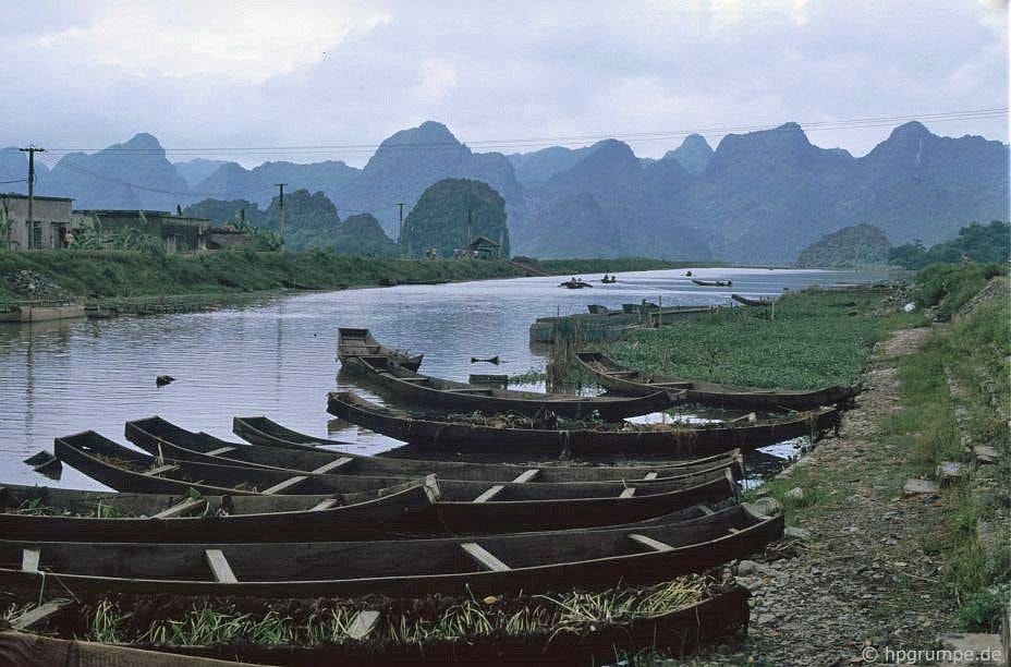 Du khách người Đức Hans-Peter Grumpe ghi lại cảnh sắc chùa Hương trong chuyến xuyên Việt năm 1991, khi ông xuôi dòng suối Yến vào động Hương Tích trên thuyền nan chèo tay.