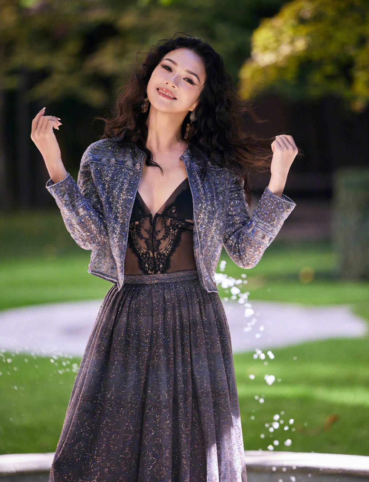 Minh tinh Trung Quốc Chương Tử Di chọn thiết kế vải ren, xuyên thấu dự Tuần thời trang Milan, Italy.