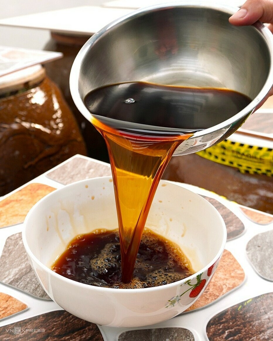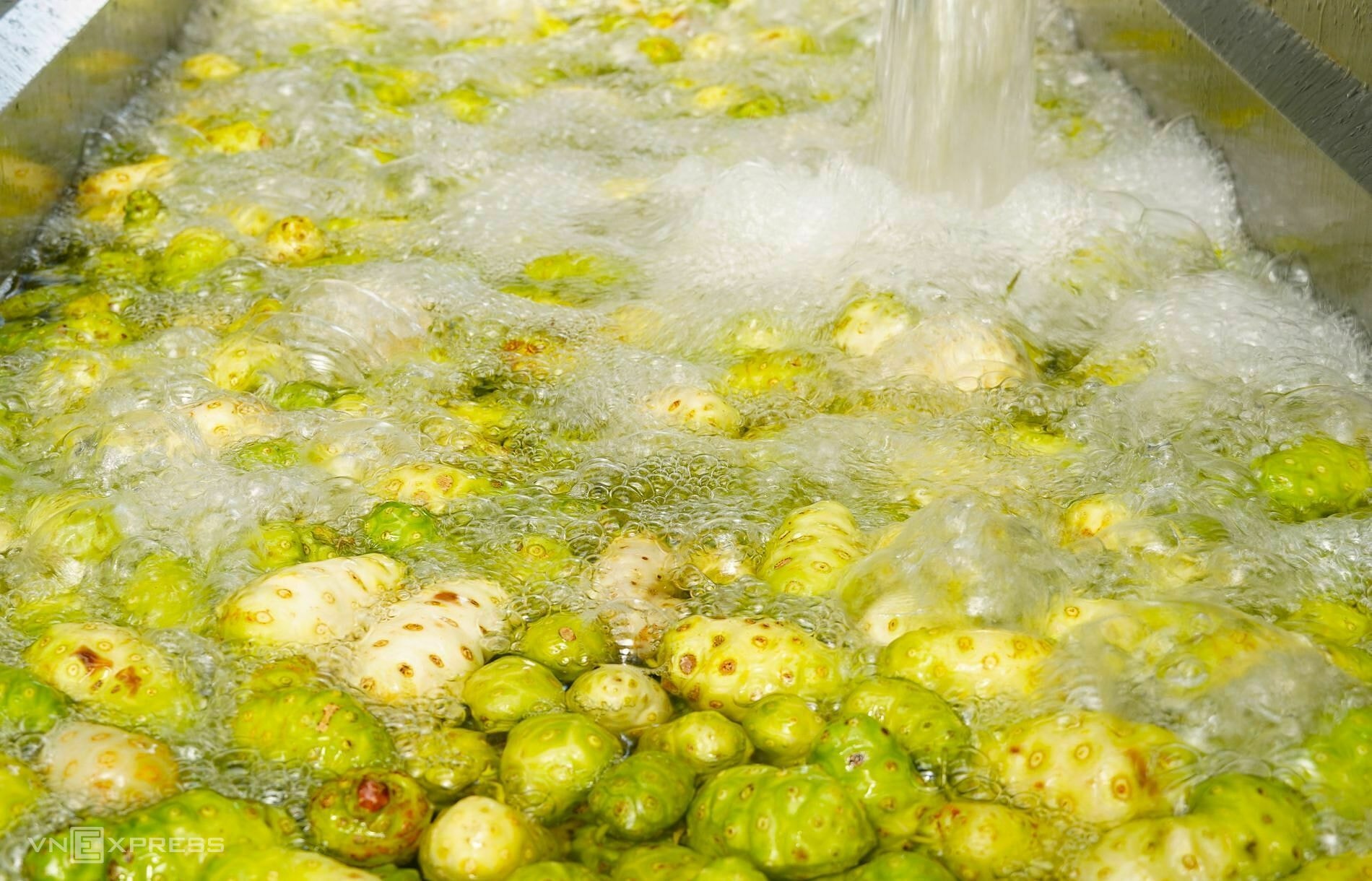 Nhàu sau thời gian ủ sẽ dần thay đổi màu sắc, sau đó được đưa vào máy tách dịch và hạt, cho ra nước cốt để pha chế theo các dòng sản phẩm.