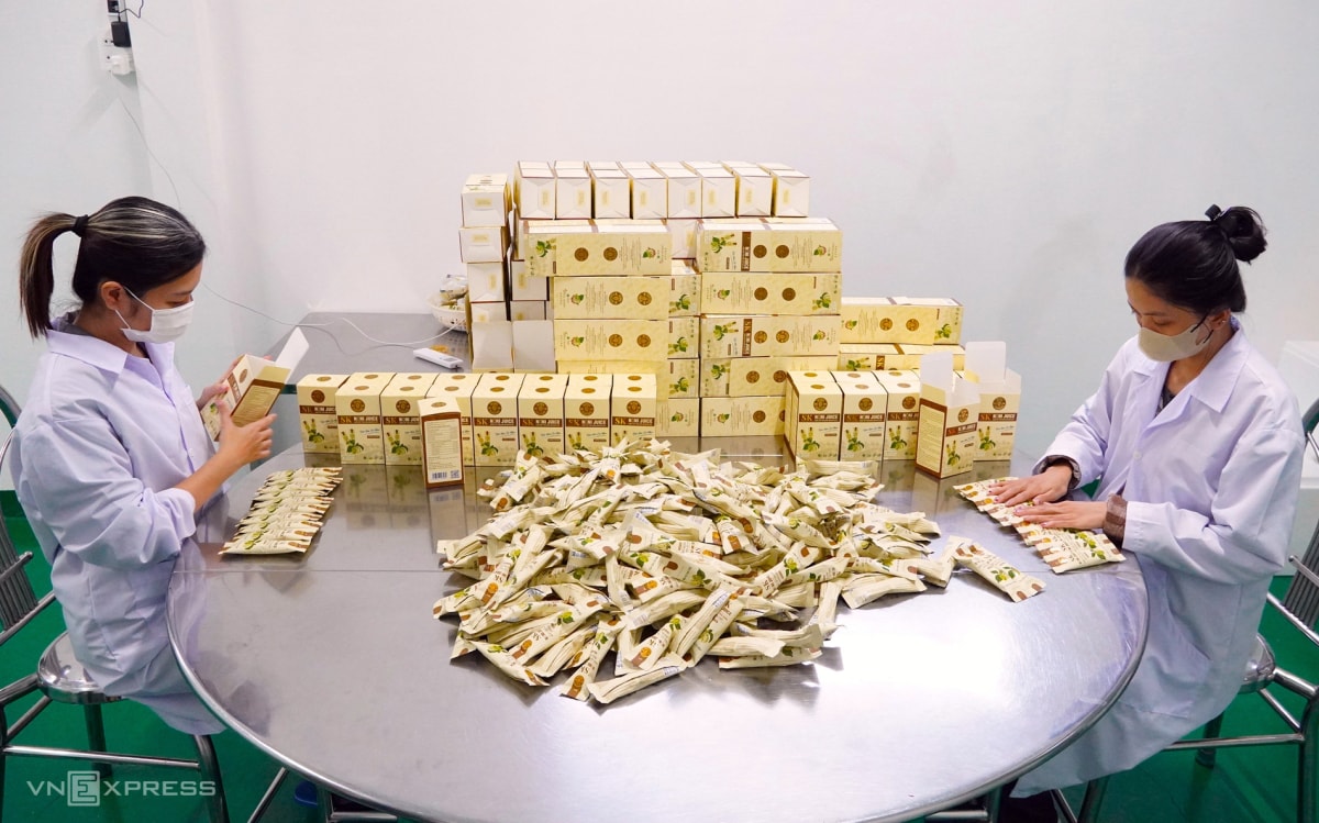 Nhân công tất bật đóng gói nước cốt thành phẩm để kịp thời giao cho khách kịp biếu tặng dịp Tết.