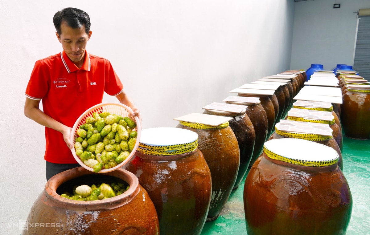 Nhàu sau sơ chế được để khô rồi cho vào hũ ủ trong 12 tháng.