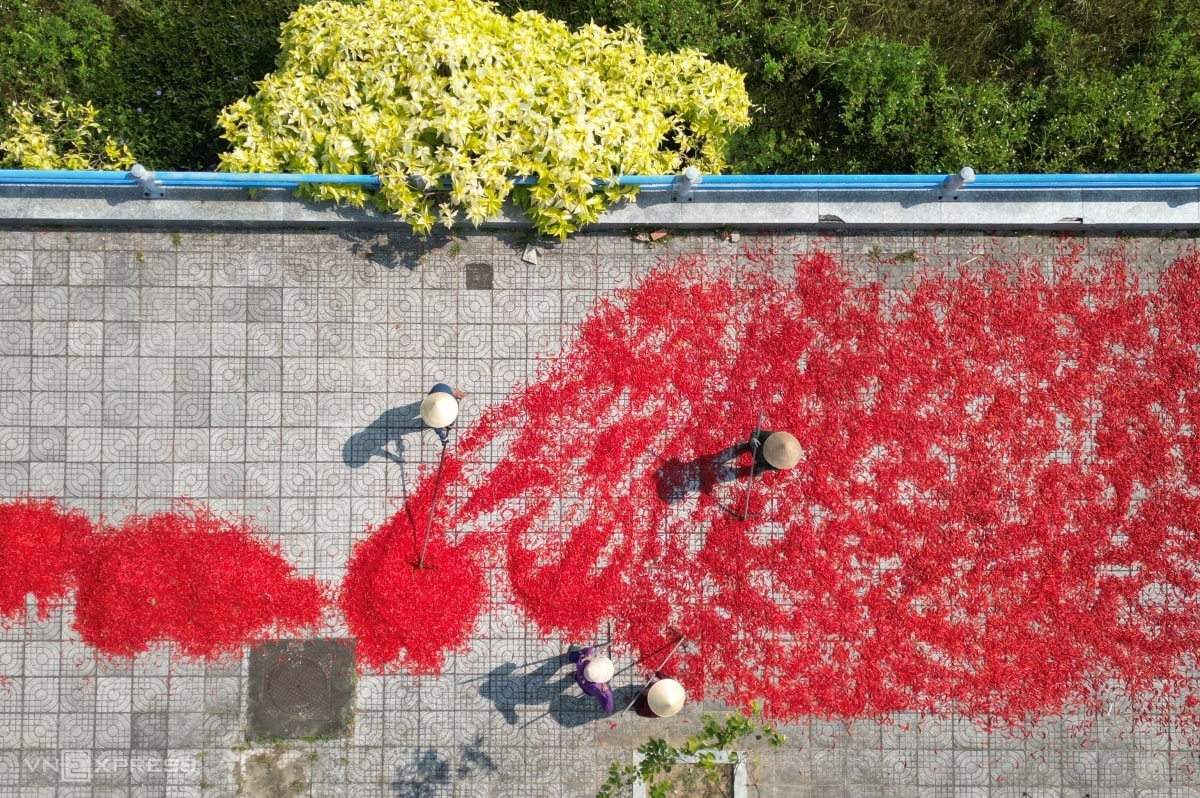 Tháng 4, đường Trường Sa (bờ nam sông Trà Khúc) ở Quảng Ngãi đỏ rực trong mùa phơi ớt. Tuyến đường dài gần 9 km, rộng 36 m - được xem là đẹp nhất tỉnh, có khoảng 3/4 chiều dài phủ kín ớt, khi người dân xã An Phú tận dụng vỉa hè phơi khô. Năm nay giá ớt tươi năm nay giảm mạnh, chỉ còn khoảng một phần mười so với năm trước.