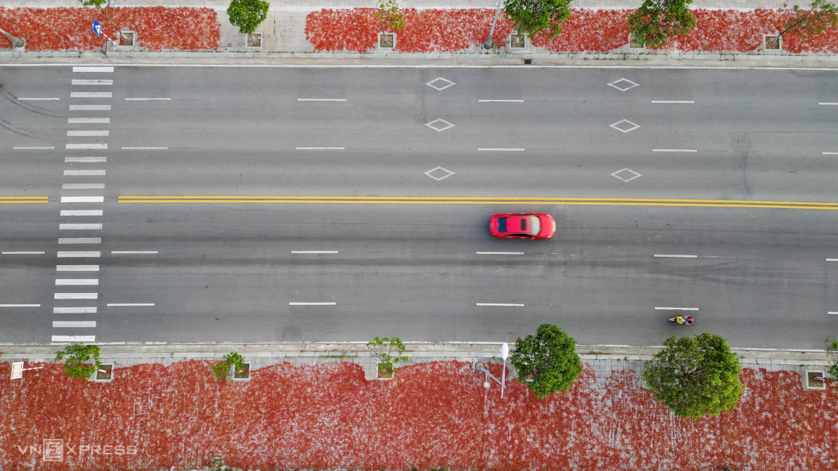 Tuyến đường Trường Sa ven sông Trà Khúc, Quảng Ngãi có lòng đường rộng 22 m, xe thưa thớt nên việc phơi ớt trên vỉa hè ít ảnh hưởng giao thông.