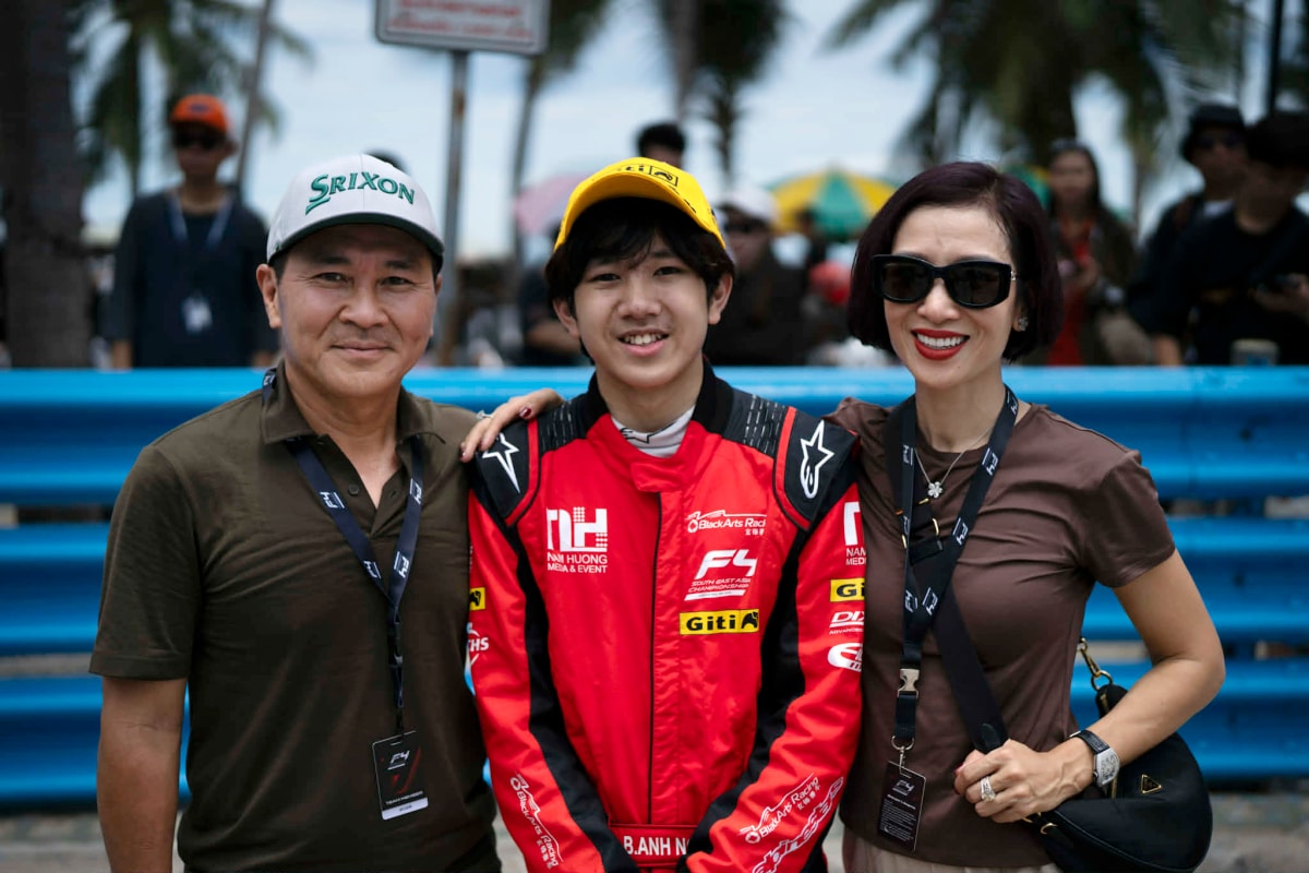 Con trai mê xe đua của Hoa khôi Thu Hương