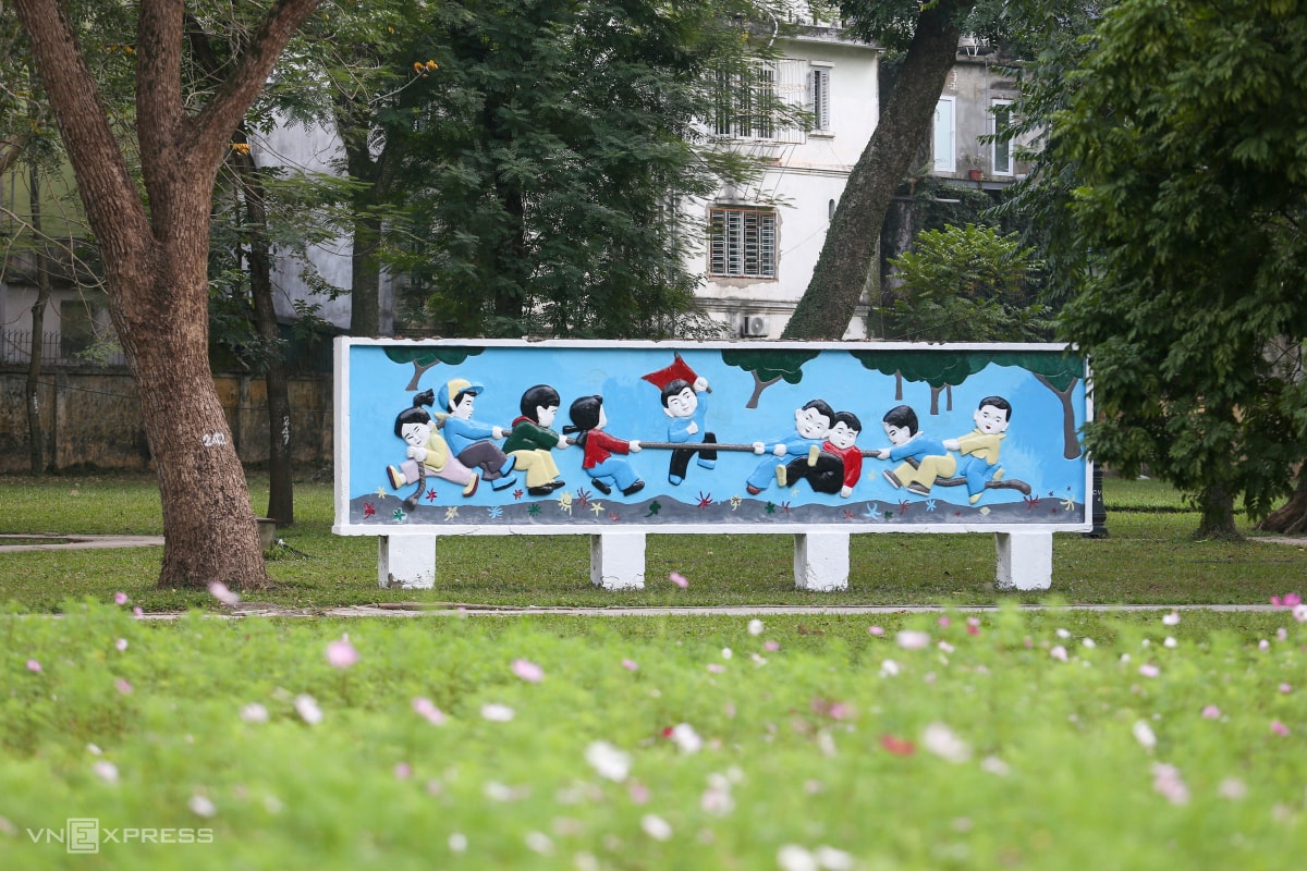 Các bức tranh trong khuôn viên công viên được sơn lại, làm mới không gian sinh hoạt chung. Bà Nguyễn Minh Anh, 65 tuổi, người gắn bó nhiều năm với nơi đây, cho biết công viên thay đổi rõ rệt, nổi bật là việc trồng thêm nhiều loài hoa.