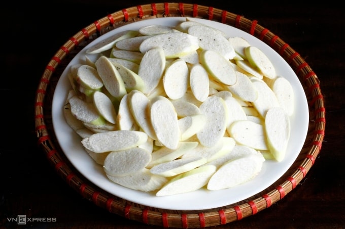 Thái niễng: Cắt bỏ gốc cứng nếu có, dùng dao sắc thái lát mỏng khoảng 0,2 cm. Nếu niễng non thì màu trắng ngà, còn niễng già có đốm đen nhạt, cả hai xào đều ngon.