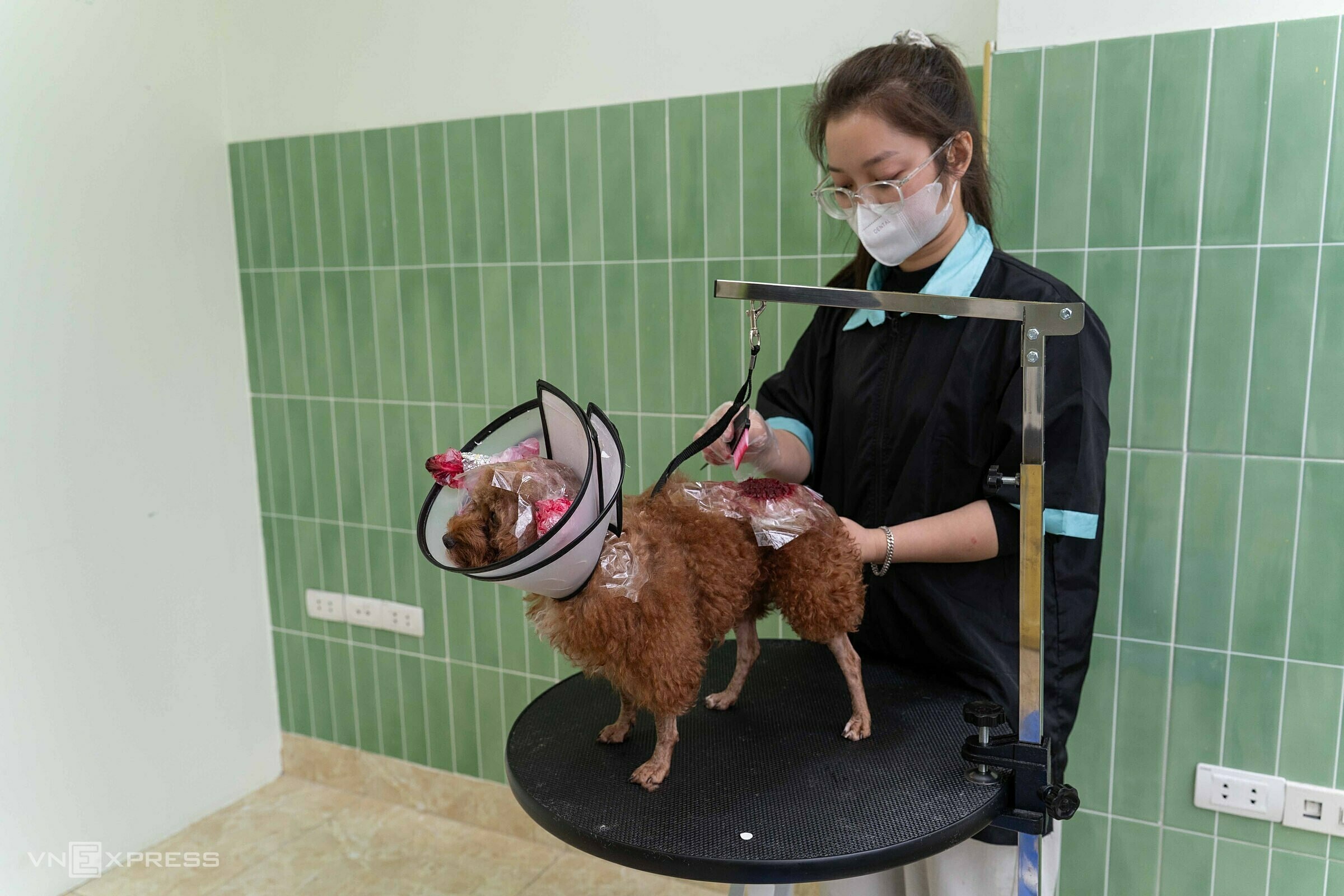 Mỗi lượt vệ sinh, tắm, cắt tỉa kéo dài 2-3 giờ, giá khoảng 300.000 đồng; nhuộm lông tính thêm 350.000-500.000 đồng.