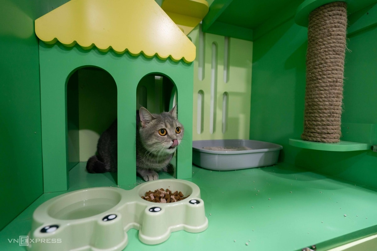 Mỗi khu nhà gồm 12 ô, chị Luân đầu tư khoảng 70 triệu đồng. Giá nhà dành cho chó cao hơn khoảng 20% so với mèo do thiết kế thêm khay kim loại phía dưới.