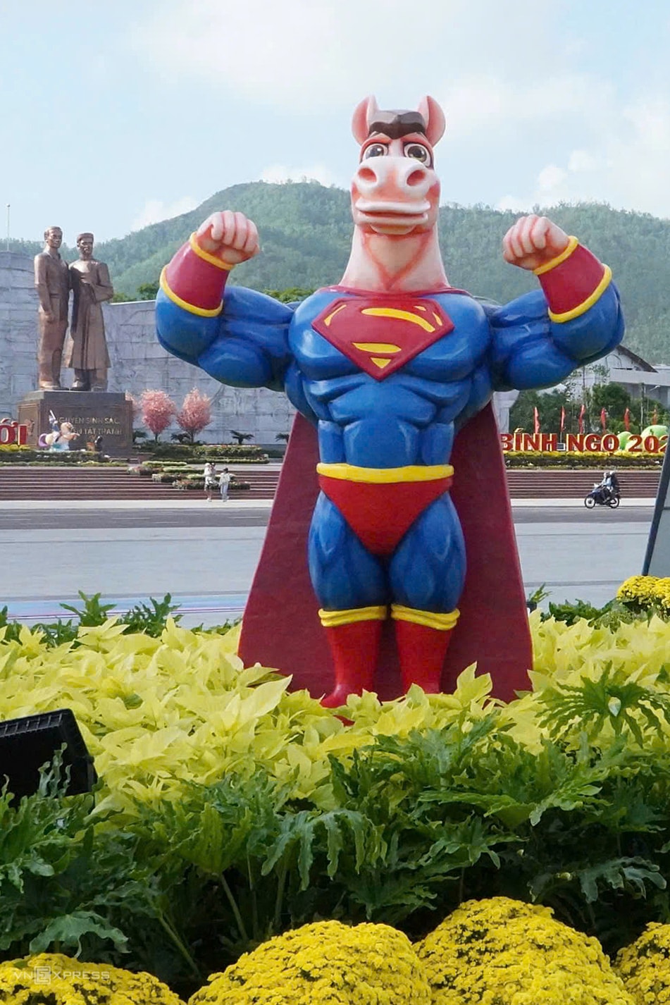 Người dân thích thú chụp hình cùng linh vật ngựa giảm cân. Ngoài ra khu vực này còn bố trí mô hình gia đình ngựa đi biển, ngựa superman ngộ nghĩnh.