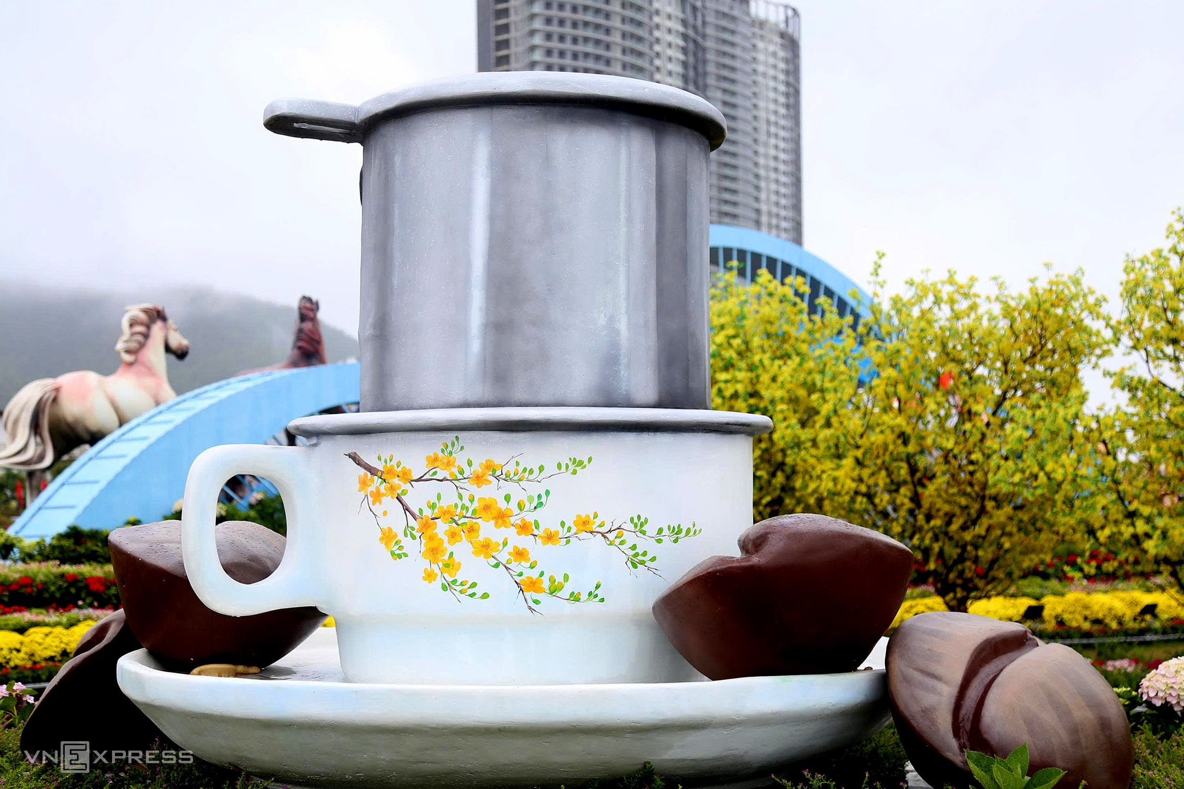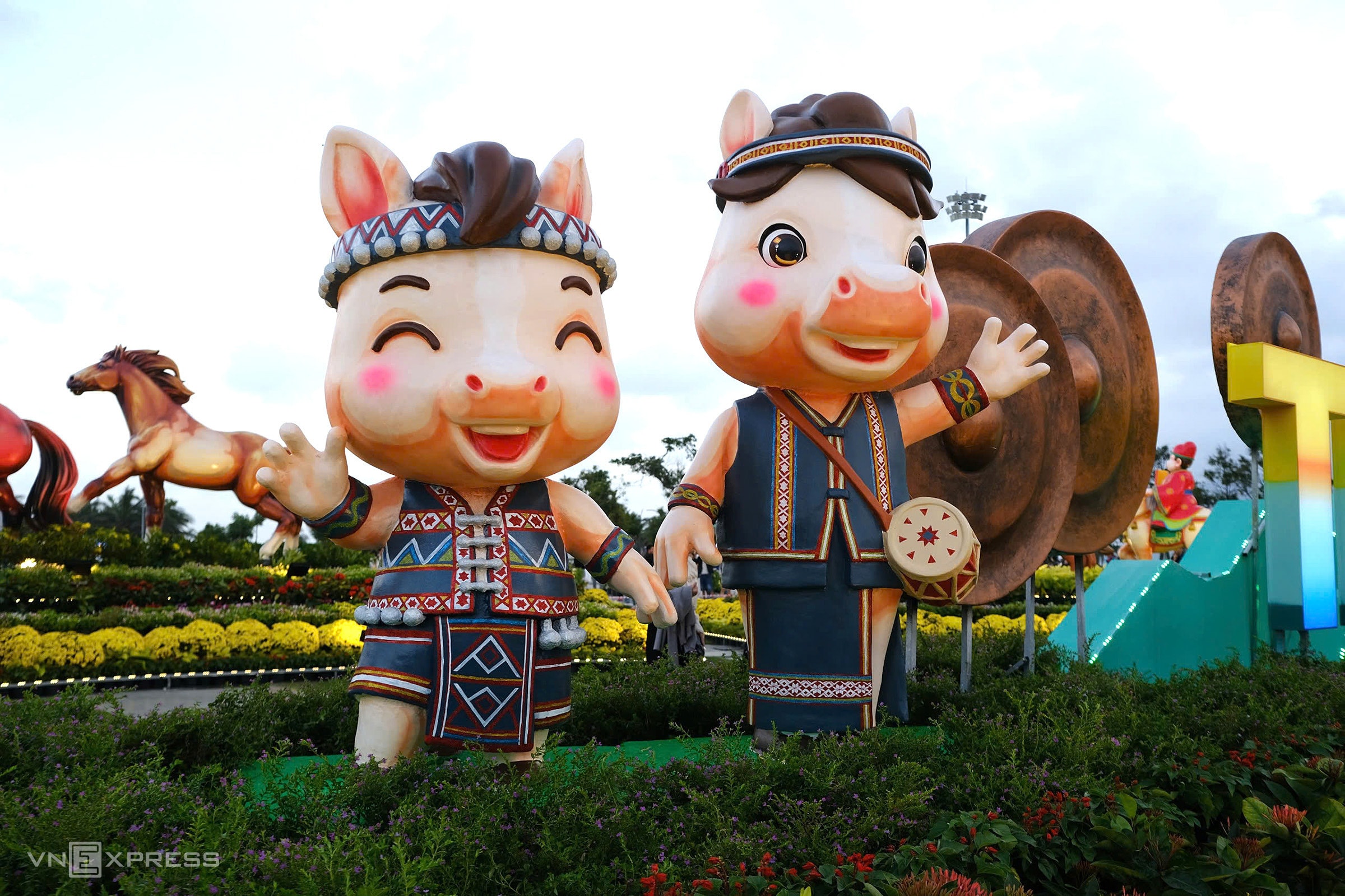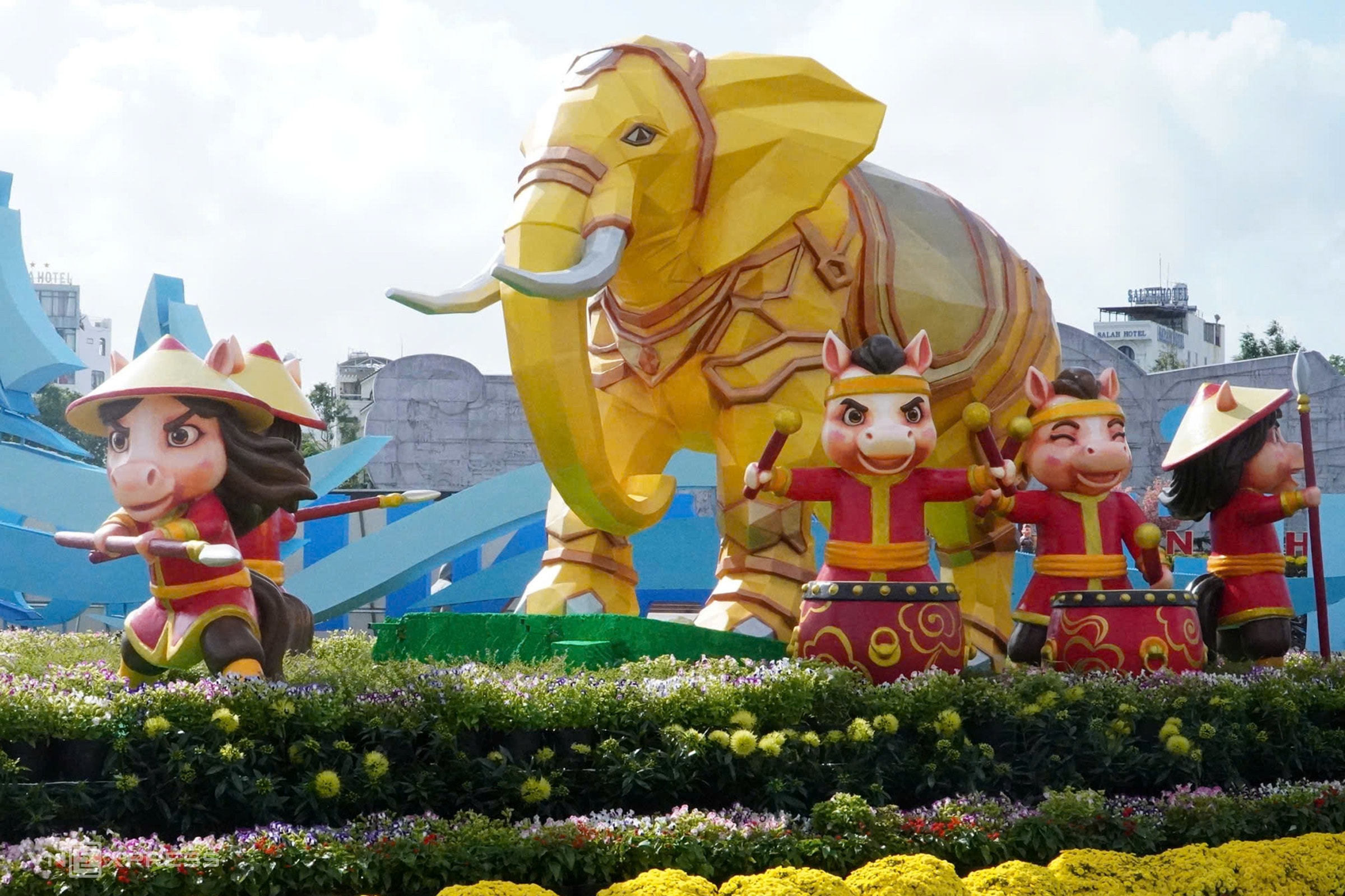 Trong cụm tiểu cảnh, linh vật ngựa "mặt cọc" cầm điện thoại thông minh gây chú ý với tạo hình tròn trịa, mái tóc vàng xoăn. Linh vật này khiến nhiều du khách thích thú, chụp hình lưu niệm..
