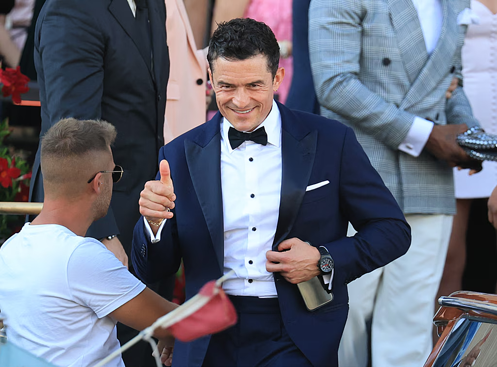 Bên cạnh công việc, Orlando Bloom dành thời gian cho các hoạt động xã giao hoặc cho bản thân. Cuối tháng 6, anh có mặt tại đám cưới của tỷ phú Jeff Bezos và cựu MC Lauren Sánchez ở Venice, Italy. Ảnh: SplashNews