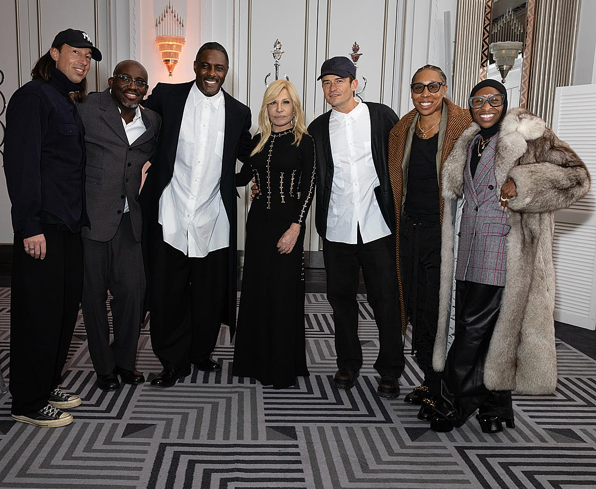 Tài tử và dàn khách mời tại tiệc tất niên của hãng thời trang Versace. Anh đứng ba từ phải sang, bên cạnh là nhà thiết kế Donatella Versace. Ảnh: Instagram Orlando Bloom
