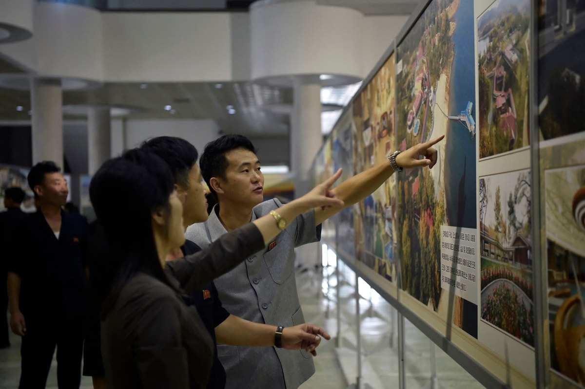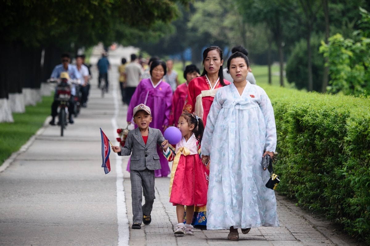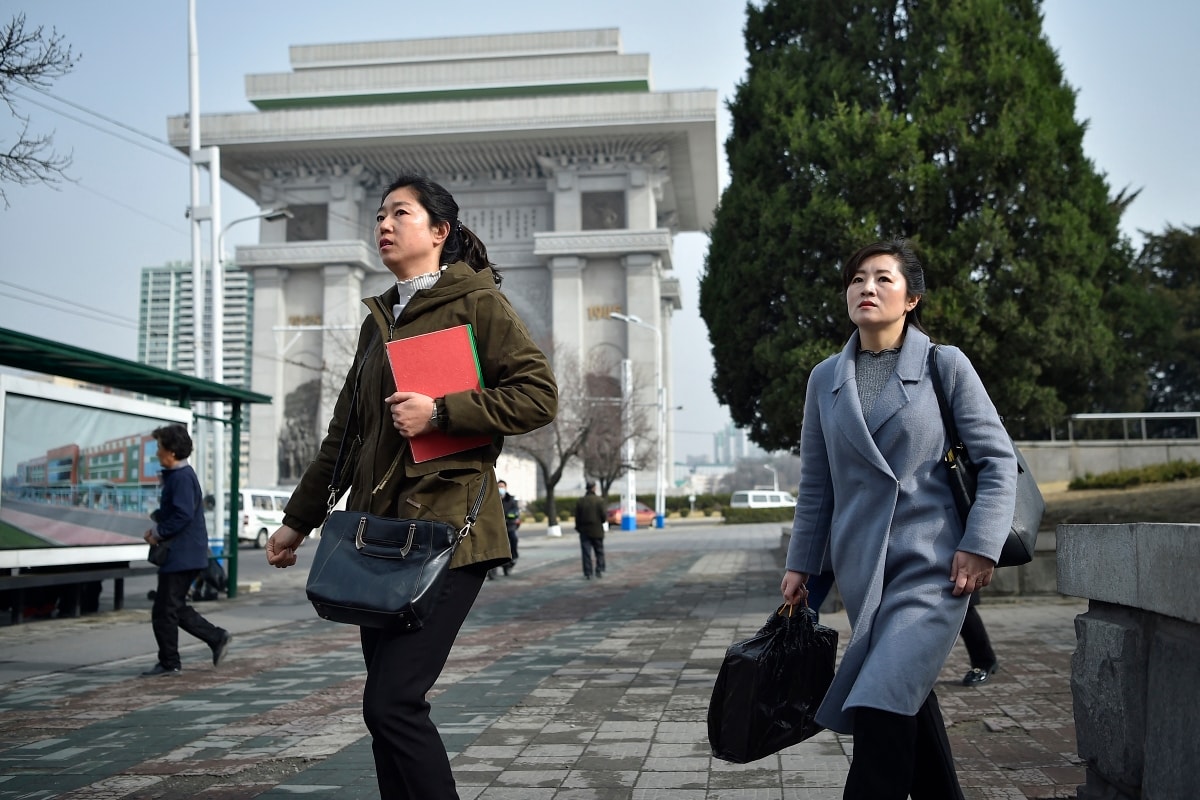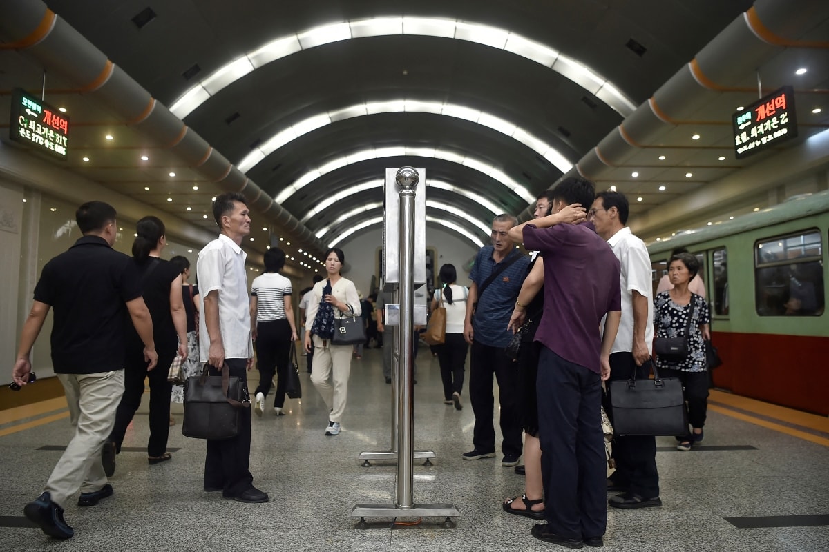 Người dân tản bộ trên đường phố, đọc tin tức ở tàu điện ngầm, mua sắm tại hội chợ là những hoạt động thường nhật ở Triều Tiên được các nhiếp ảnh gia ghi lại.