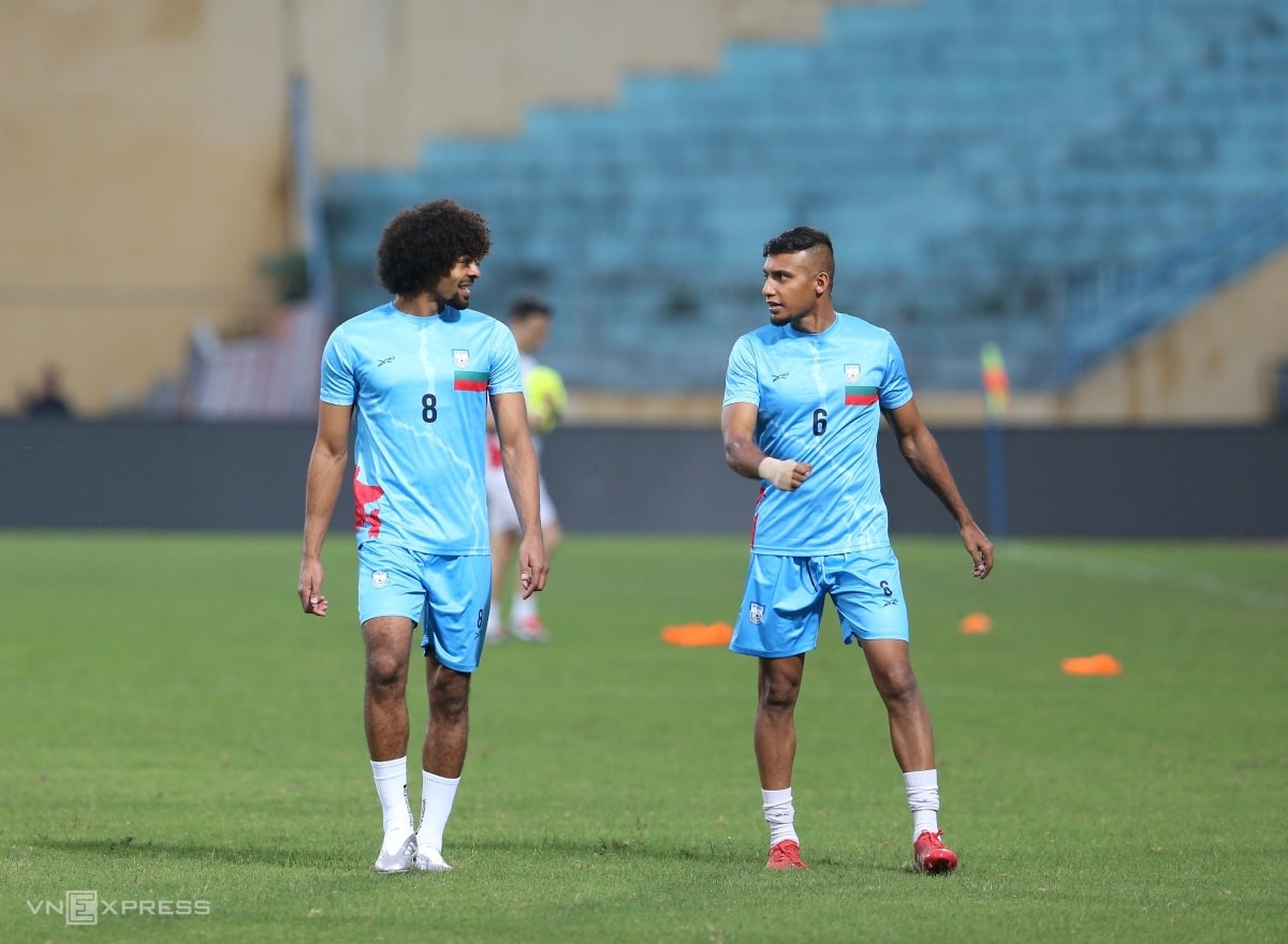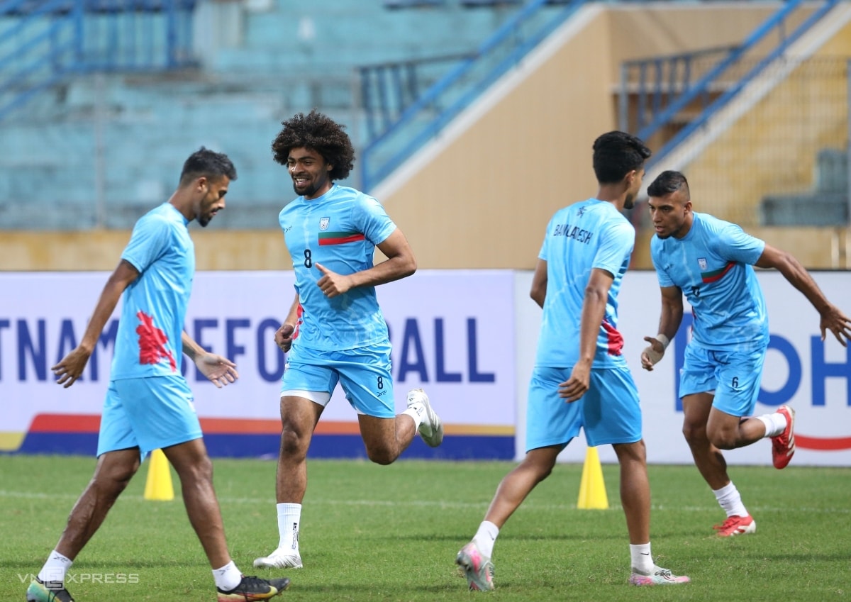 Tuyển Bangladesh tập thử sân Hàng Đẫy vào lúc 18h hôm nay. Trước đó một tiếng rưỡi, thầy trò HLV Kim Sang-sik đến tập thử sân. Đây là sân đấu quen thuộc với phân nửa cầu thủ được triệu tập, do là sân nhà cấp CLB của Thể Công, Hà Nội FC và Công an Hà Nội.