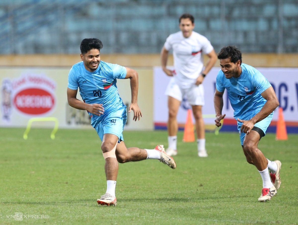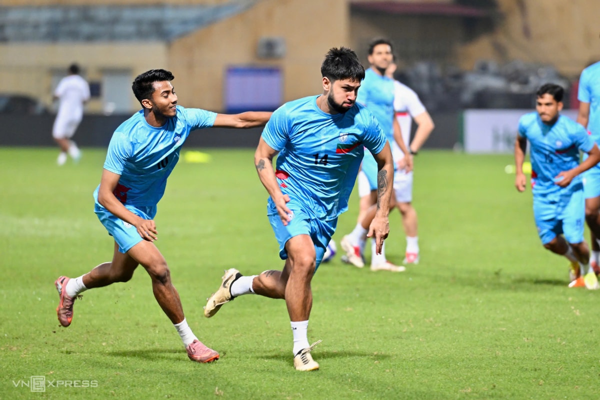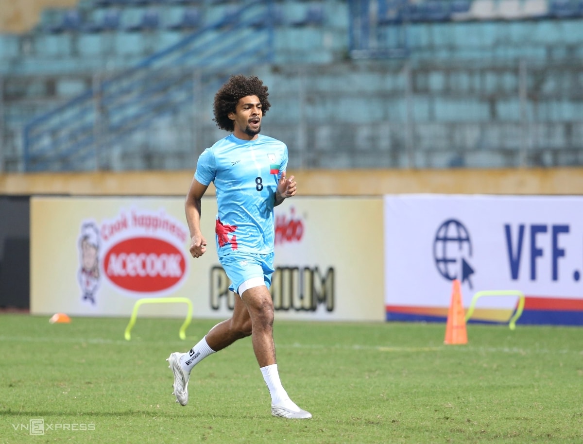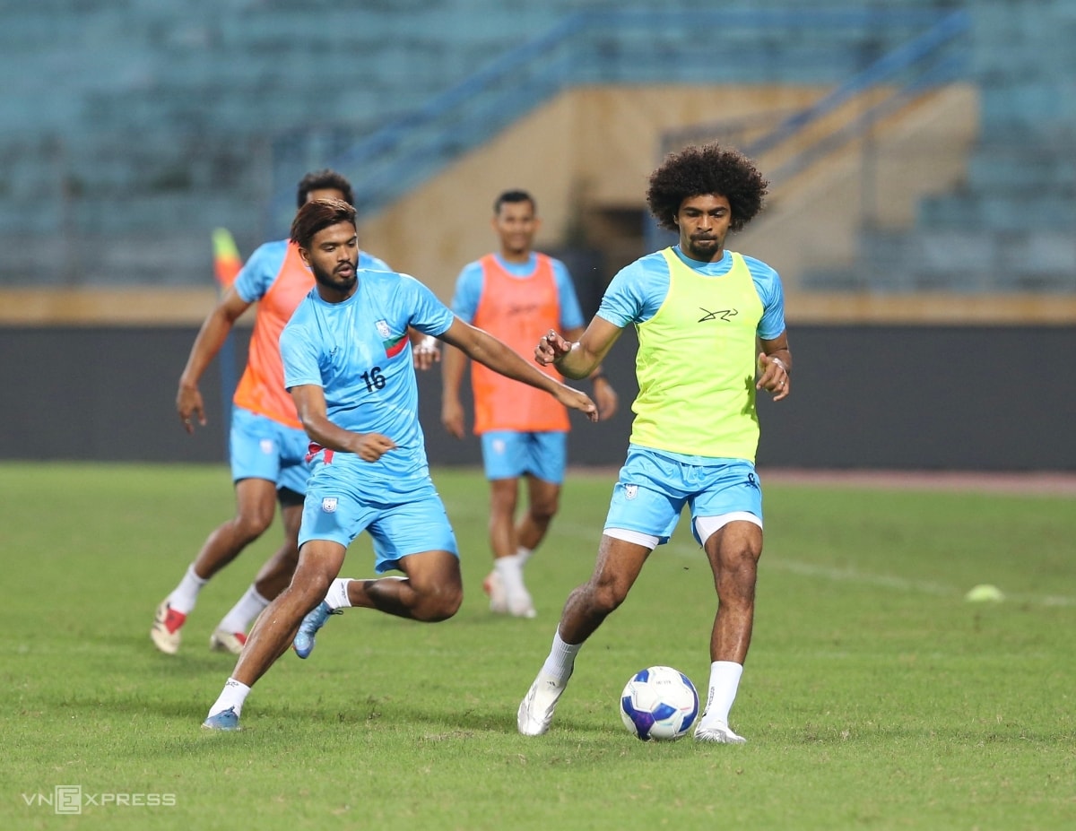 Hamza Choudhury cùng đội tuyển Bangladesh tập thử sân Hàng Đẫy tối nay, để chuẩn bị cho trận giao hữu đấu Việt Nam vào ngày mai.