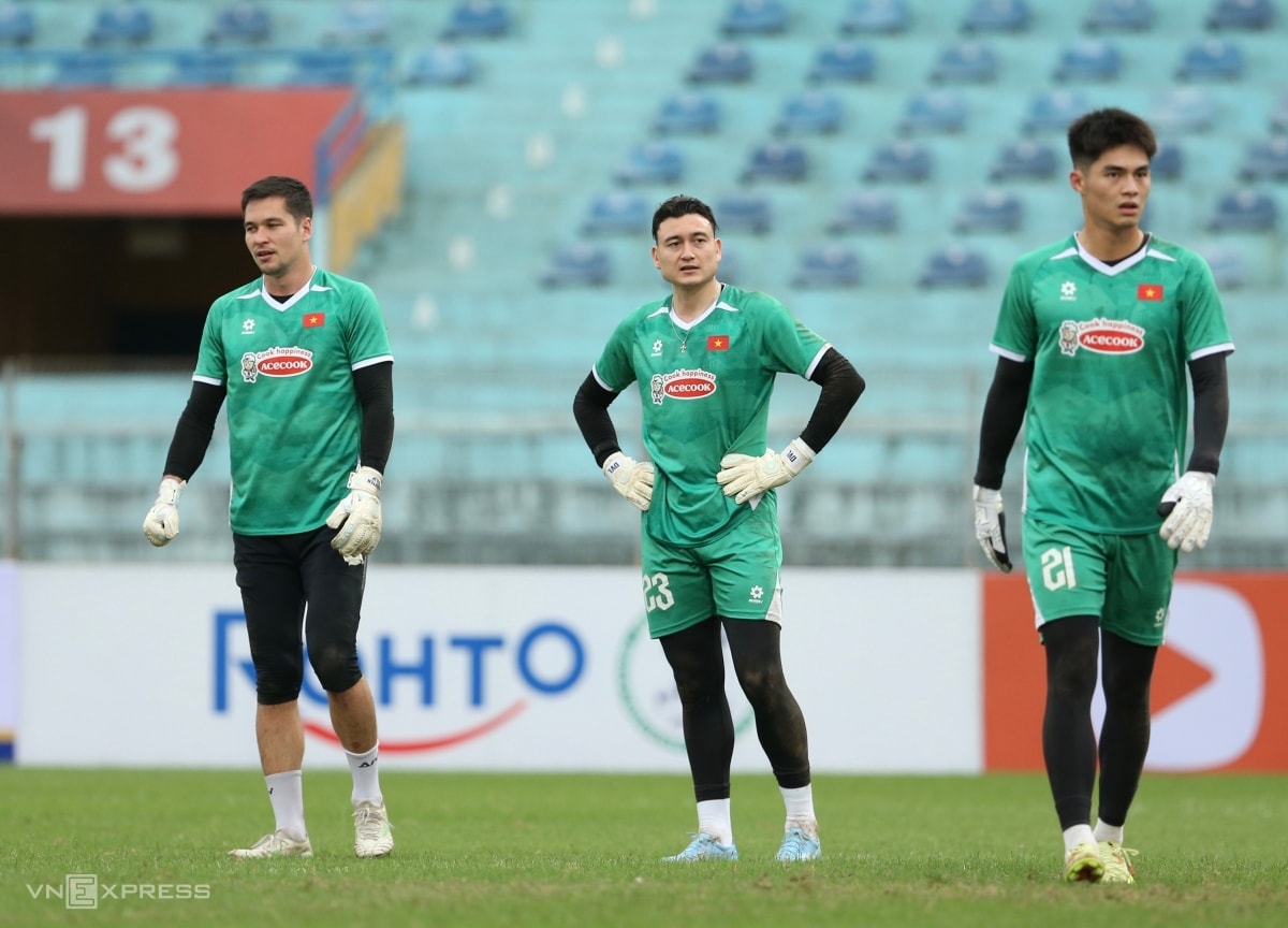 Vị trí thủ môn cũng là sự cạnh tranh gay gắt giữa ba thủ môn có thể hình và phong độ tốt, gồm Nguyễn Filip (1,92 m), Đặng Văn Lâm (1,88) và Trần Trung Kiên (1,91) - từ trái sang.
