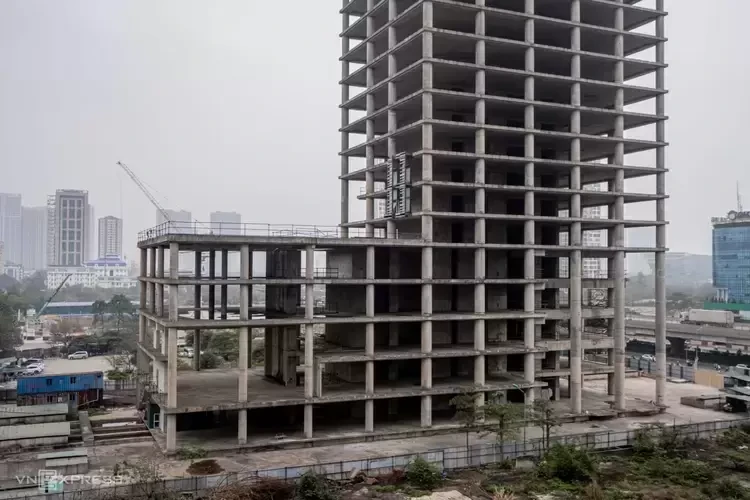Hiện trạng tòa tháp dang dở trện đường Phạm Hùng, Hà Nội