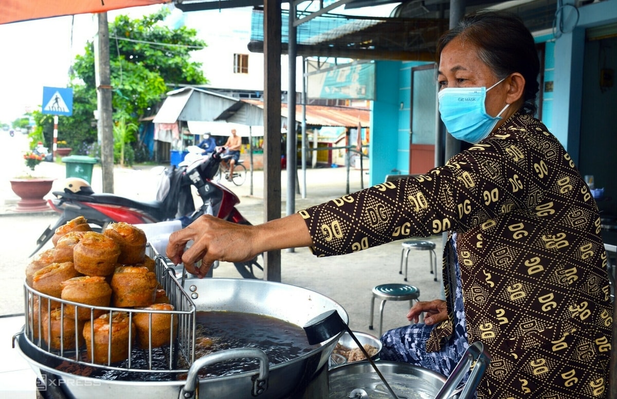 Món bánh đặc sản của người Khmer ở Sóc Trăng có lớp vỏ giòn, nhân đậu xanh, thịt và tôm, lâu nay là thức quà hấp dẫn du khách.