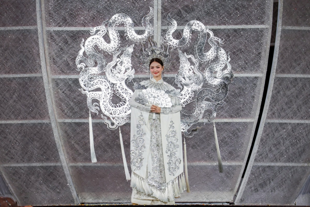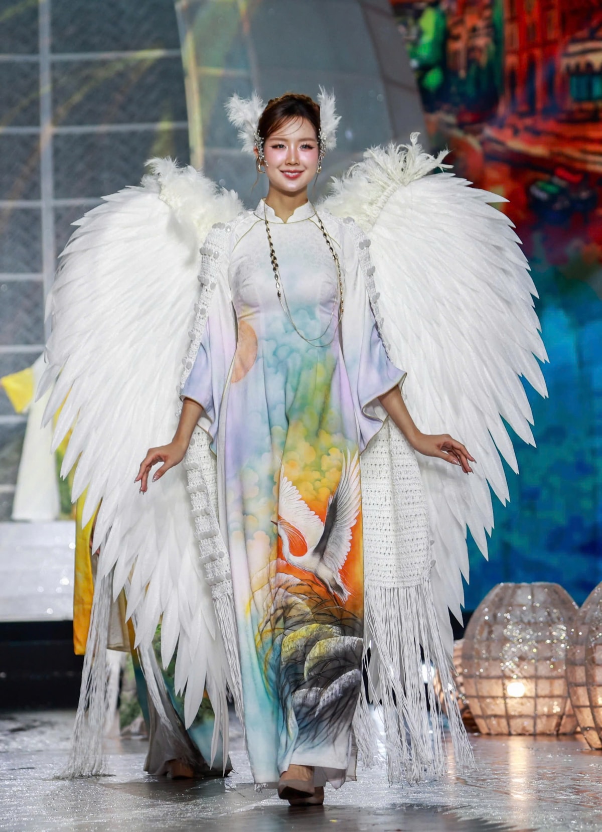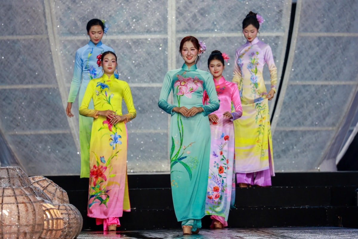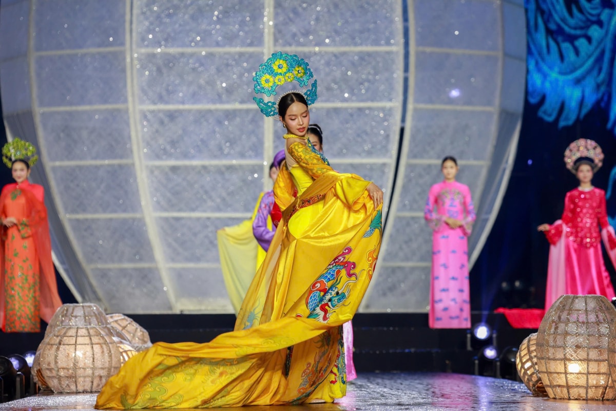 Hoa hậu Thanh Thủy, Bảo Ngọc, Tiểu Vy trình diễn trang phục của nhiều nhà thiết kế trong buổi khai mạc Lễ hội áo dài TP HCM lần thứ 12, tối 6/3.