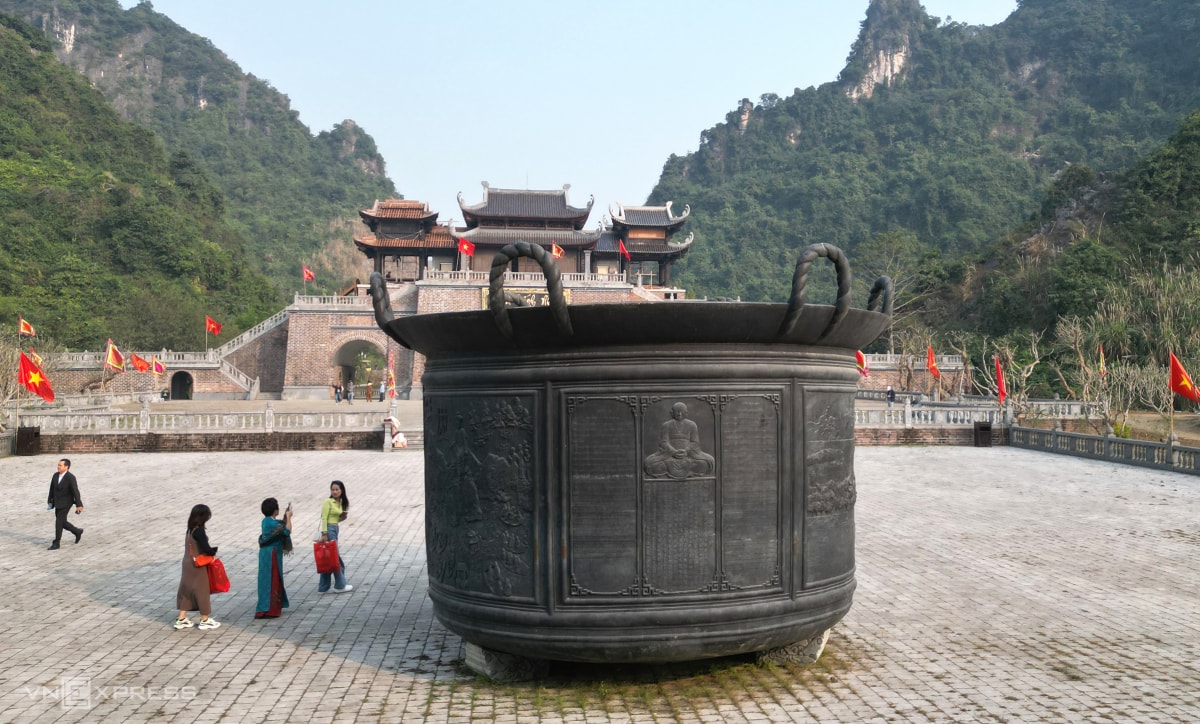 Một chiếc vạc đồng lớn nặng hàng tấn được đúc dựng trong khu vực sau Đài Kính Địa. Mặt ngoài vạc khắc lời kinh phật và những câu chuyện lịch sử gắn với cuộc đời, sự nghiệp của vua Đinh Tiên Hoàng.