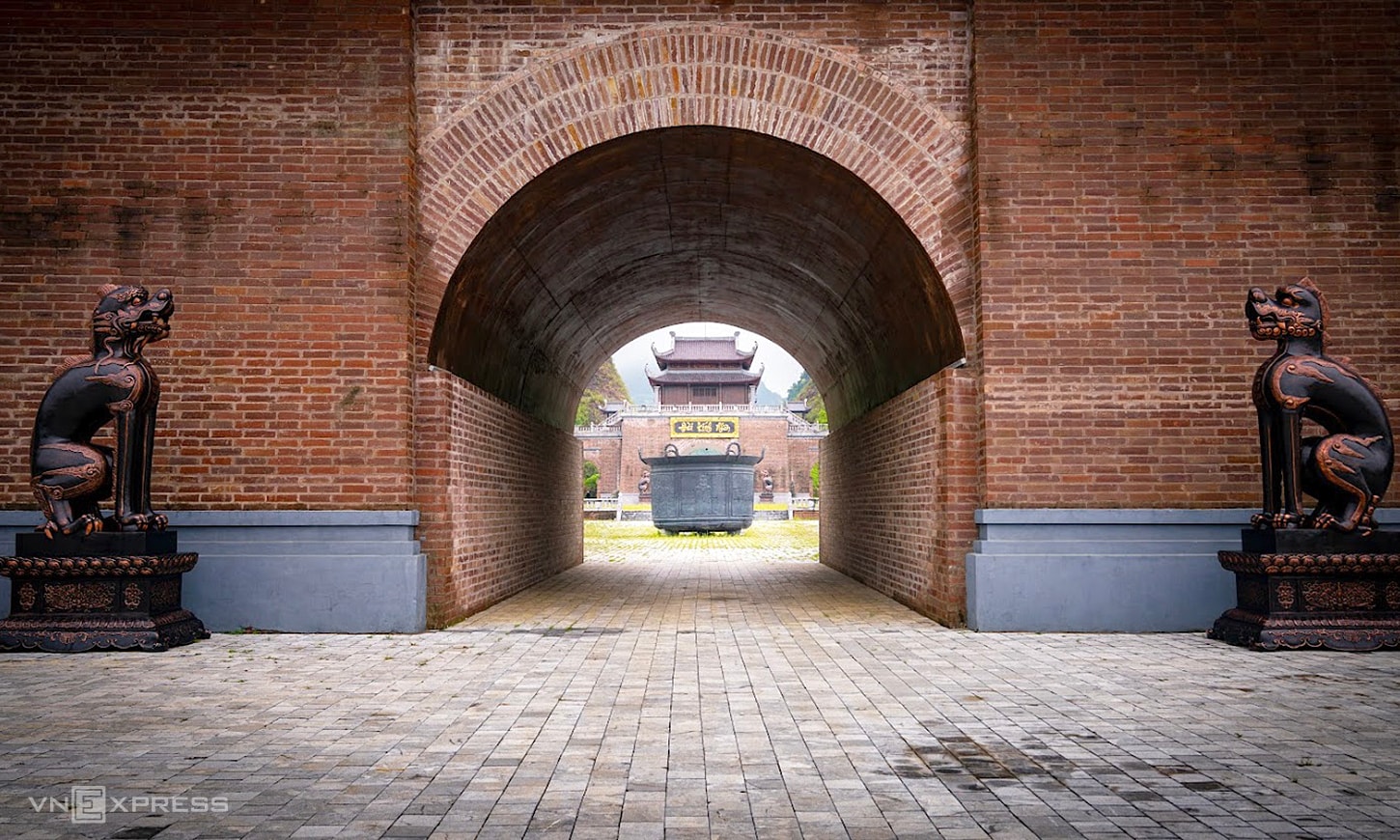 Mỗi đại môn lại có ba cửa qua lại theo lối công thành cung đình: Chính môn, tả môn và hữu môn. Các đại môn được xây dựng bằng gạch giả đá ong, kỹ nghệ làm và nung gạch ở trình độ cao của thợ Bát Tràng (Hà Nội).