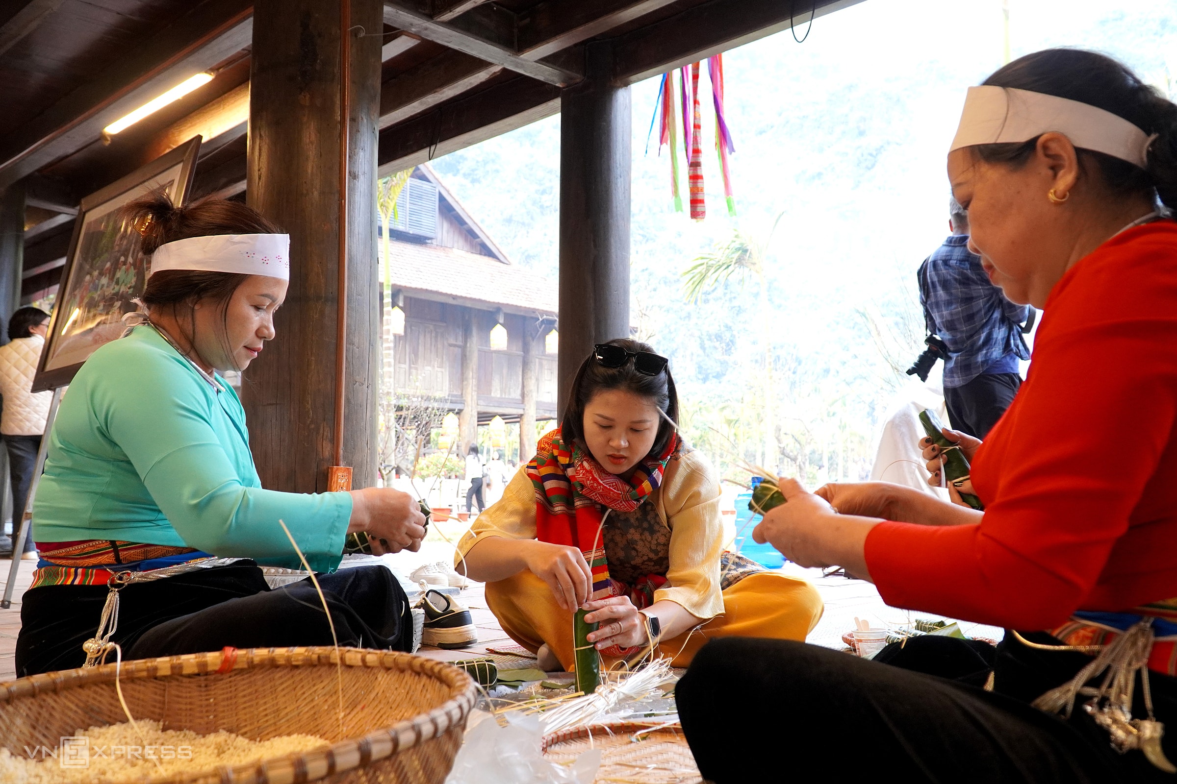 Người dân cùng tham gia gói bánh tét, bánh ốc, cơm lam... cùng phụ nữ Mường trong nhà sàn. Đây là những thực phẩm phổ biến từ xa xưa ở vùng Hoa Lư và được lưu truyền đến ngày nay như một nét sinh hoạt văn hóa độc đáo.