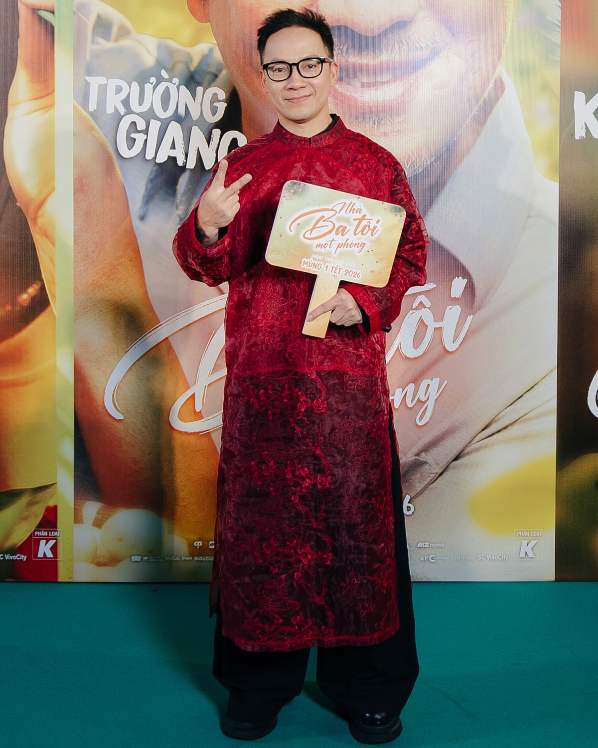 Tối 13/2, êkíp Nhà ba tôi một phòng tổ chức công chiếu tác phẩm tại một cụm rạp ở phường Tân Hưng, TP HCM. Tác phẩm là phim điện ảnh đầu tay của nghệ sĩ Trường Giang. Vợ anh - diễn viên Nhã Phương - giữ vị trí giám đốc casting.