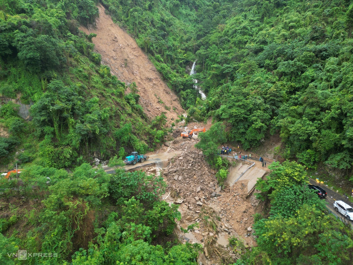 Suốt 72 giờ, hàng chục máy xúc, máy ủi khẩn trương đào đất đá để tìm người mất tích sau sạt lở ở đèo Khánh Sơn.