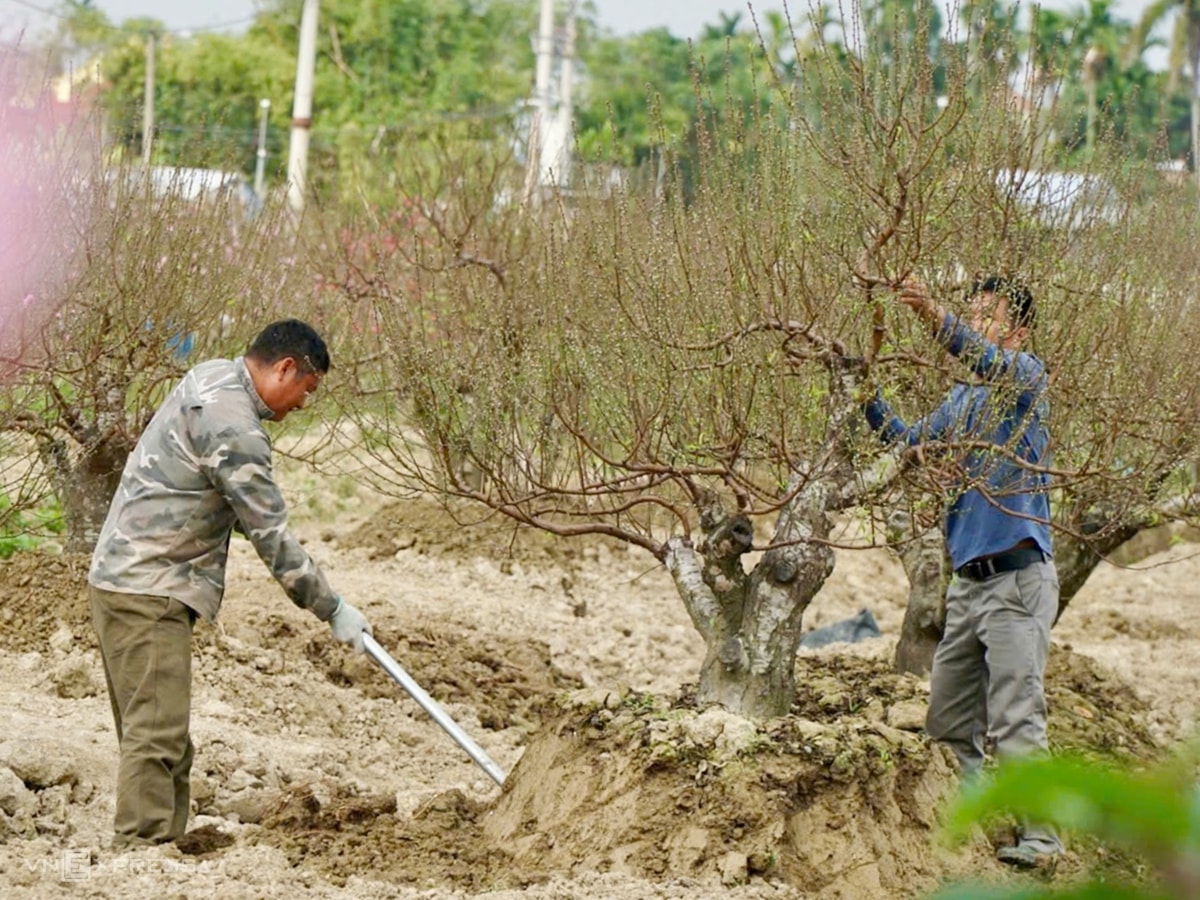 Hồi sinh sau bão Yagi, đào cổ thụ An Dương trở lại thị trường Tết với vẻ đẹp rêu phong, sai nụ, sẵn sàng phục vụ thú chơi của người dân.